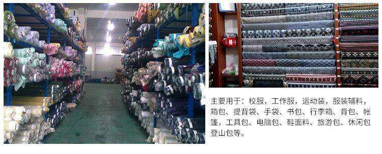 Gama completa de variedades: jacquard, sarja, listras, brilhante, xadrez, tingido com fio, bicolor, tricolor, favo de mel, camuflagem, impressão. Muitos tipos de processamento: revestimento de calandragem de cola PU PVC, revestimento de prata, espuma, flocagem, impressão, tingimento de almofada, etc.