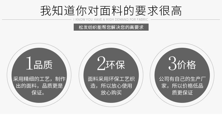 A Songfa Textile foi fundada em 2001 e está localizada em Keqiao China Textile City, a capital têxtil da China. Ela tem uma localização geográfica superior, transporte conveniente e vantagens regionais. Nós aderimos aos princípios de gestão rigorosa, excelente qualidade, integridade e reputação em primeiro lugar, e fornecemos serviços completos de blanks, tingimento, produtos acabados e pós-processamento para dar aos clientes mais vantagens em qualidade e preço. Nós sinceramente fazemos cada metro de tecido para você.