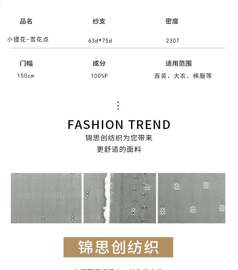 Tafetá de Poliéster com Bolinhas de Floco de Neve, Forro Jacquard Shumei Silk Jacquard Pequeno de Alta Qualidade para Terno, Forro Jacquard Catiónico de Poliéster Completo