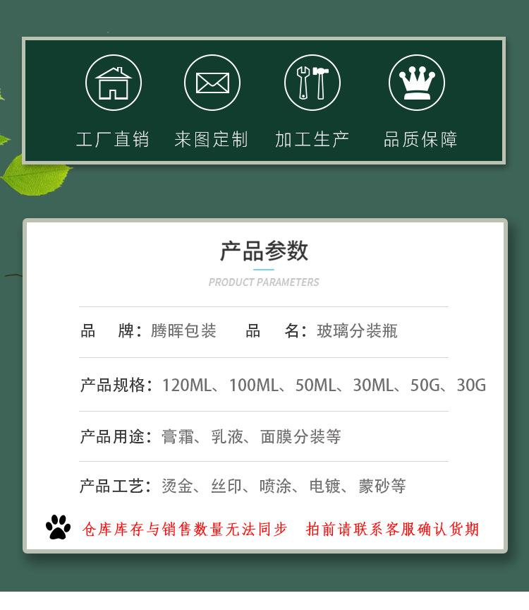 Novo terno de vidro cosmético 30 g50g frasco de creme 40ml100ml120ml frasco de loção material de embalagem cosmética