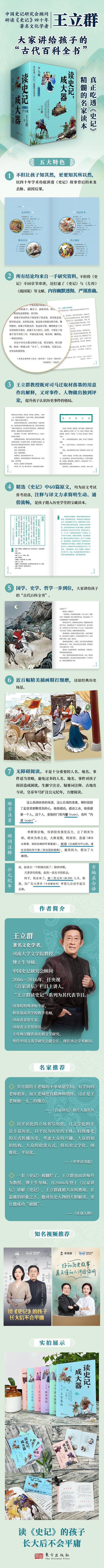 Como a primeira das "Vinte e Quatro Histórias" e a primeira das "Quatro Histórias Antigas", "Registros do Grande Historiador" é um clássico inquestionável e é conhecido como "uma enciclopédia antiga", cobrindo sistemas rituais e musicais, leis astronômicas, montanhas e rios, literatura e livros. Três mil anos de vicissitudes, guerras, imperadores, generais, mascates, heróis, estudiosos, vicissitudes da vida e ressentimento, após a grande obra de Sima Qian, foram finalmente condensados em 130 artigos e mais de 526.500 palavras. A leitura de "Registros do Grande Historiador" por Wang Liqun formou uma característica distintiva de contar a história por meio de histórias de personagens, contar a vida por meio da história e contar o espírito por meio da vida. Desta vez, ele não reescreveu simplesmente a série de obras "Wang Liqun Reads "Records of the Grand Historian" publicada anteriormente, nem a linguagem original da TV "Lecture Room", mas passou três anos, trabalhando dia e noite, para criar um novo leitor "Records of the Grand Historian" com 600.000 palavras especificamente para crianças para ajudá-las a entender "Records of the Grand Historian", um livro lindo, mas difícil. O livro não adota a biografia completa, explicação completa e método de tradução completa que foi popular por sete anos. Em vez disso, ele seleciona 60 passagens maravilhosas com forte narrativa em "Historical Records" e as reescreve em uma linguagem moderna que as crianças gostam e aceitam - linguagem literária. A reescrita não se limita a um determinado capítulo em "Historical Records". Algumas histórias são combinadas de dois ou mais capítulos.