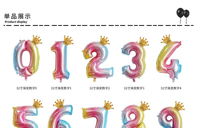 Compre Novo 32 polegadas 40 polegadas gradiente digital mini coroa decoração de festa de aniversário balão de filme de alumínio atacado no atacado no Joom.pro