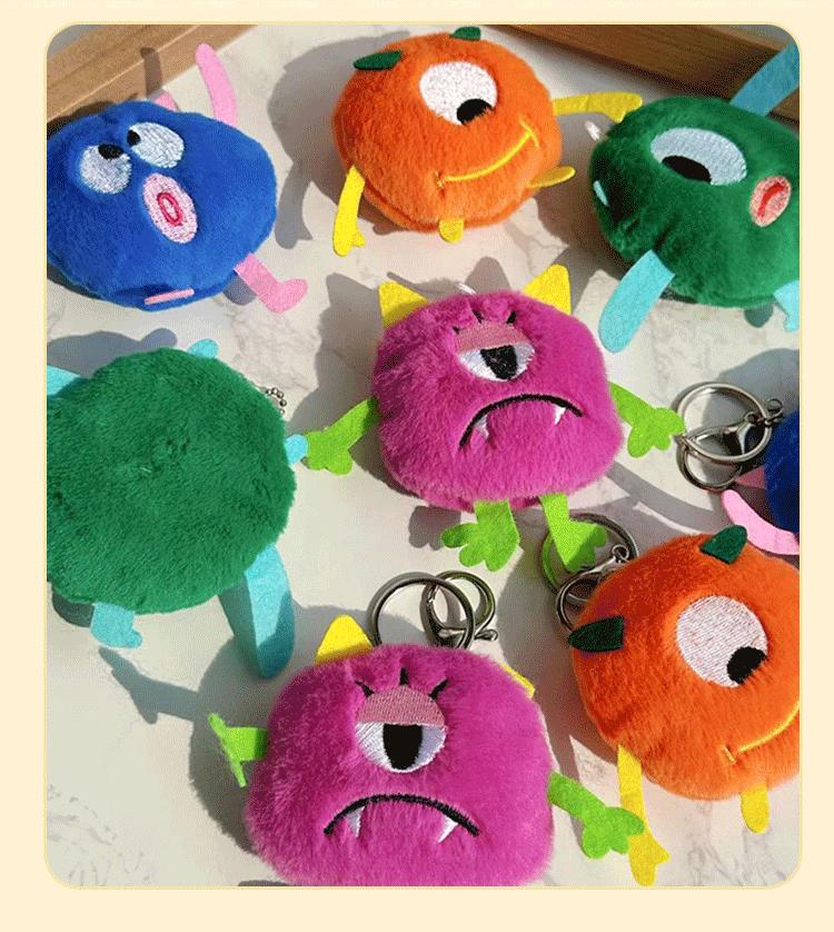 Bonito dopamina pequeno monstro brinquedo chaveiro acessórios saco boneca pingente crianças presente de pelúcia atacado