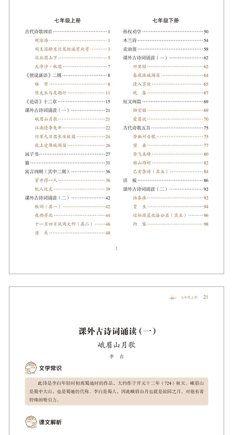 Ensino Fundamental Deve Memorizar Poesia Antiga e Guia de Análise de Texto para o Sétimo Ano Poesia Antiga e Chinês Clássico Livro Genuíno Atacado Edição Educação do Povo