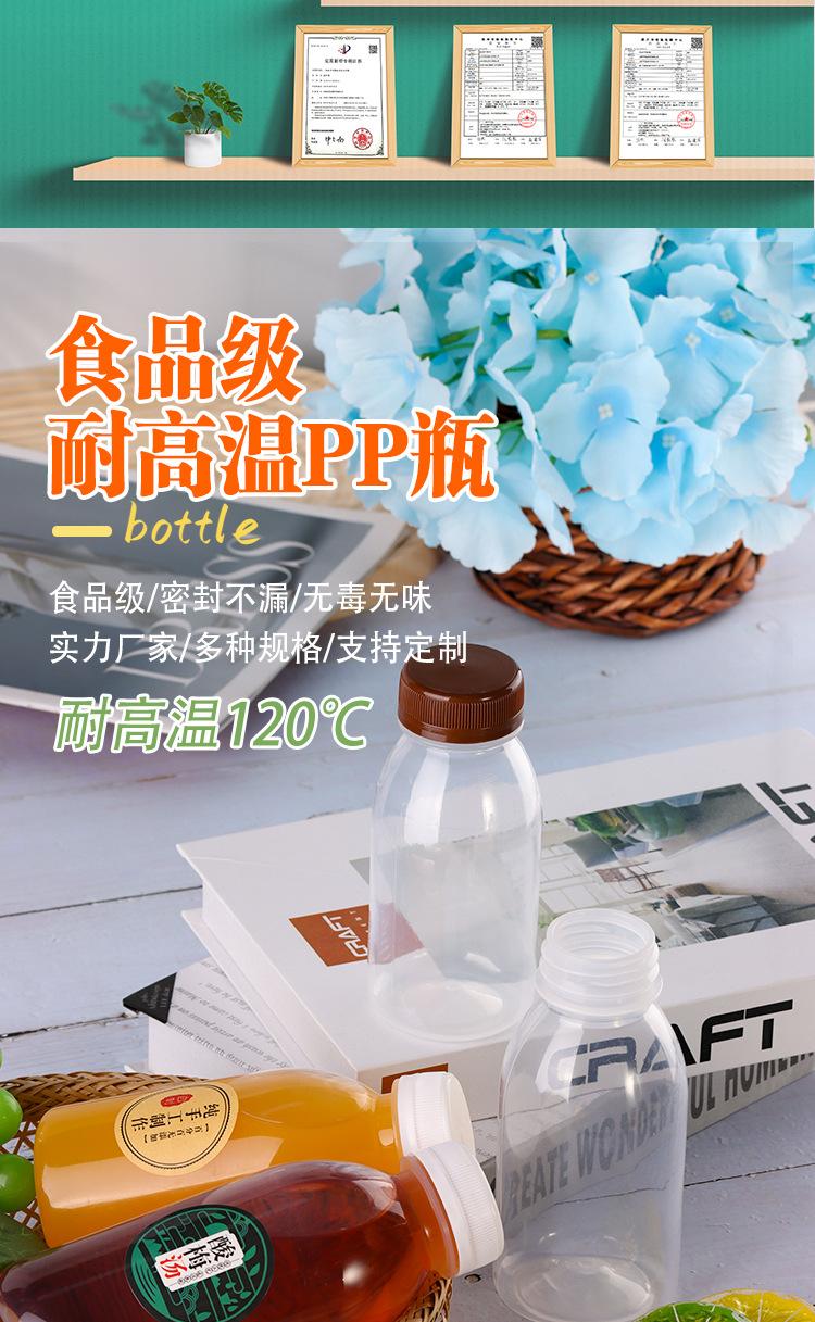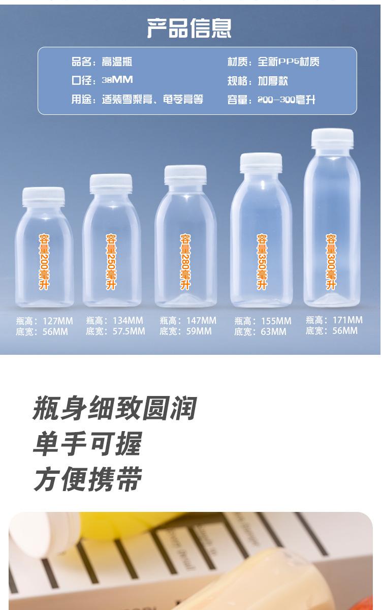 Garrafa de plástico resistente a altas temperaturas, grau alimentício, creme Fuling, creme de fundo do mar, garrafa descartável, celebridade da Internet, leite, chá, bebida quente, garrafa pp