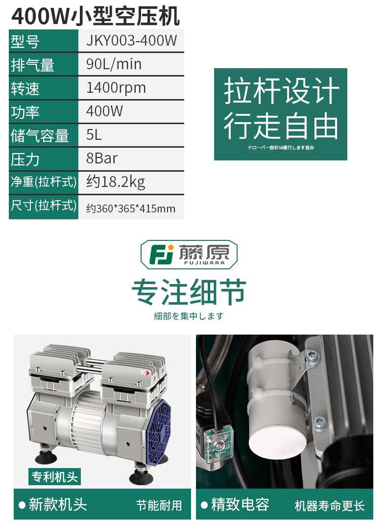 Compressor de ar pequeno Fujiwara compressor de ar portátil tanque de armazenamento de ar silencioso isento de óleo 220V bomba de ar para carpintaria