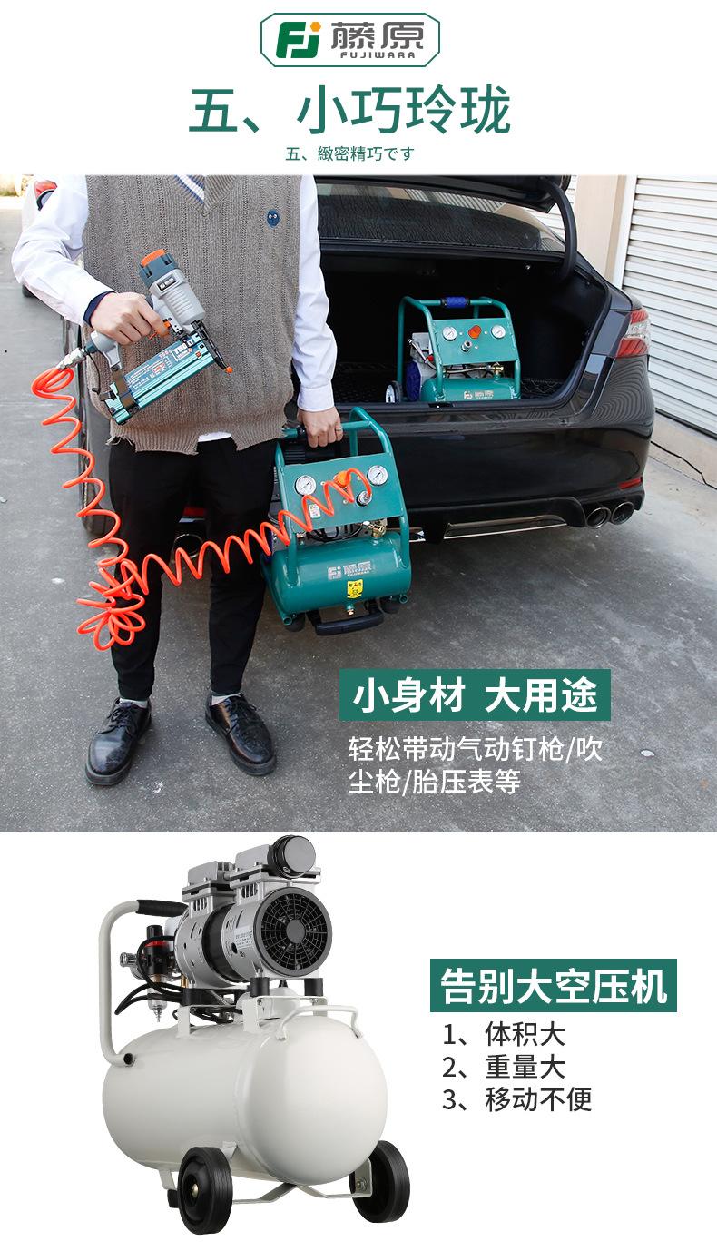 Compre Compressor de ar pequeno Fujiwara compressor de ar portátil tanque de armazenamento de ar silencioso isento de óleo 220V bomba de ar para carpintaria no atacado no Joom.pro