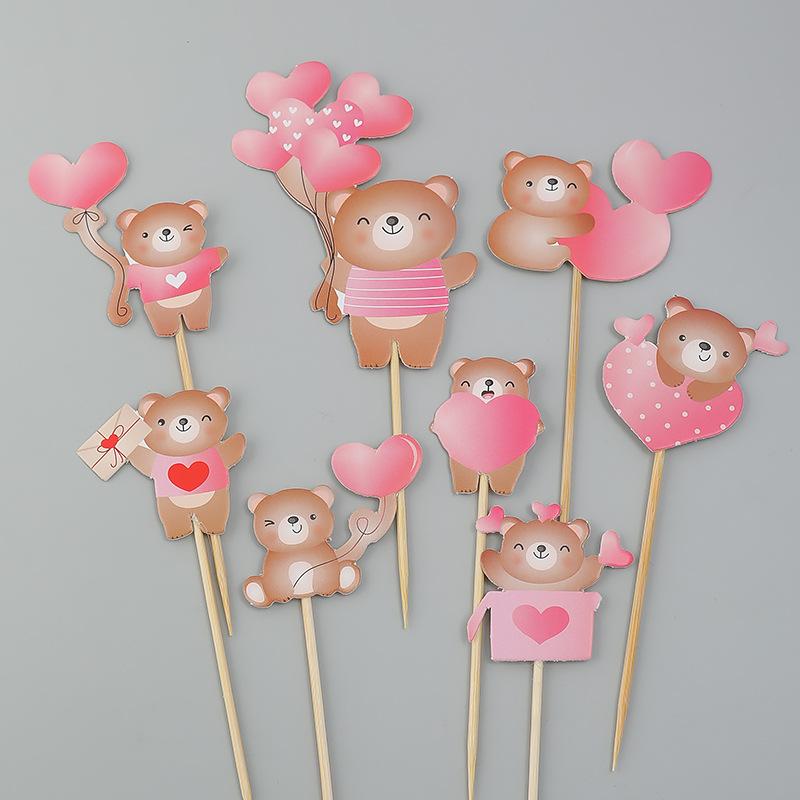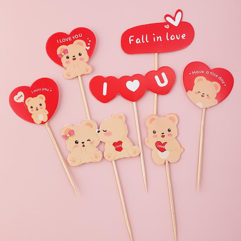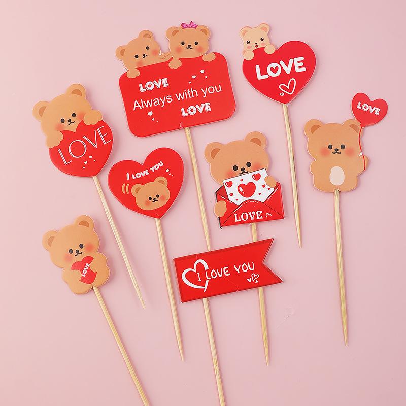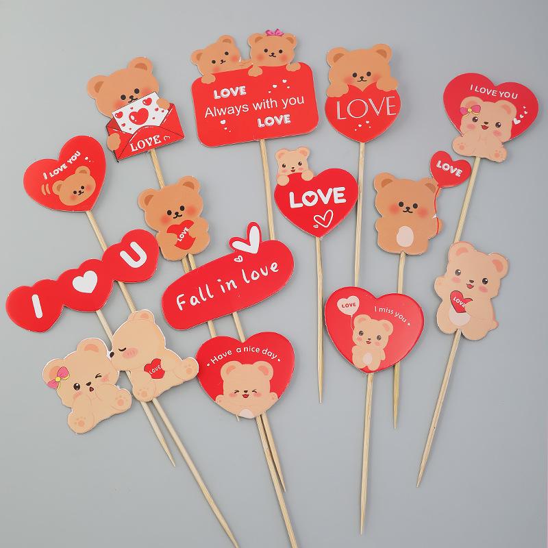 2024 Dia dos Namorados decoração do bolo de urso plug-in cartão de cozimento decoração arco arco-íris bolo plug-in