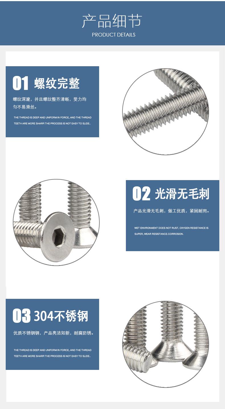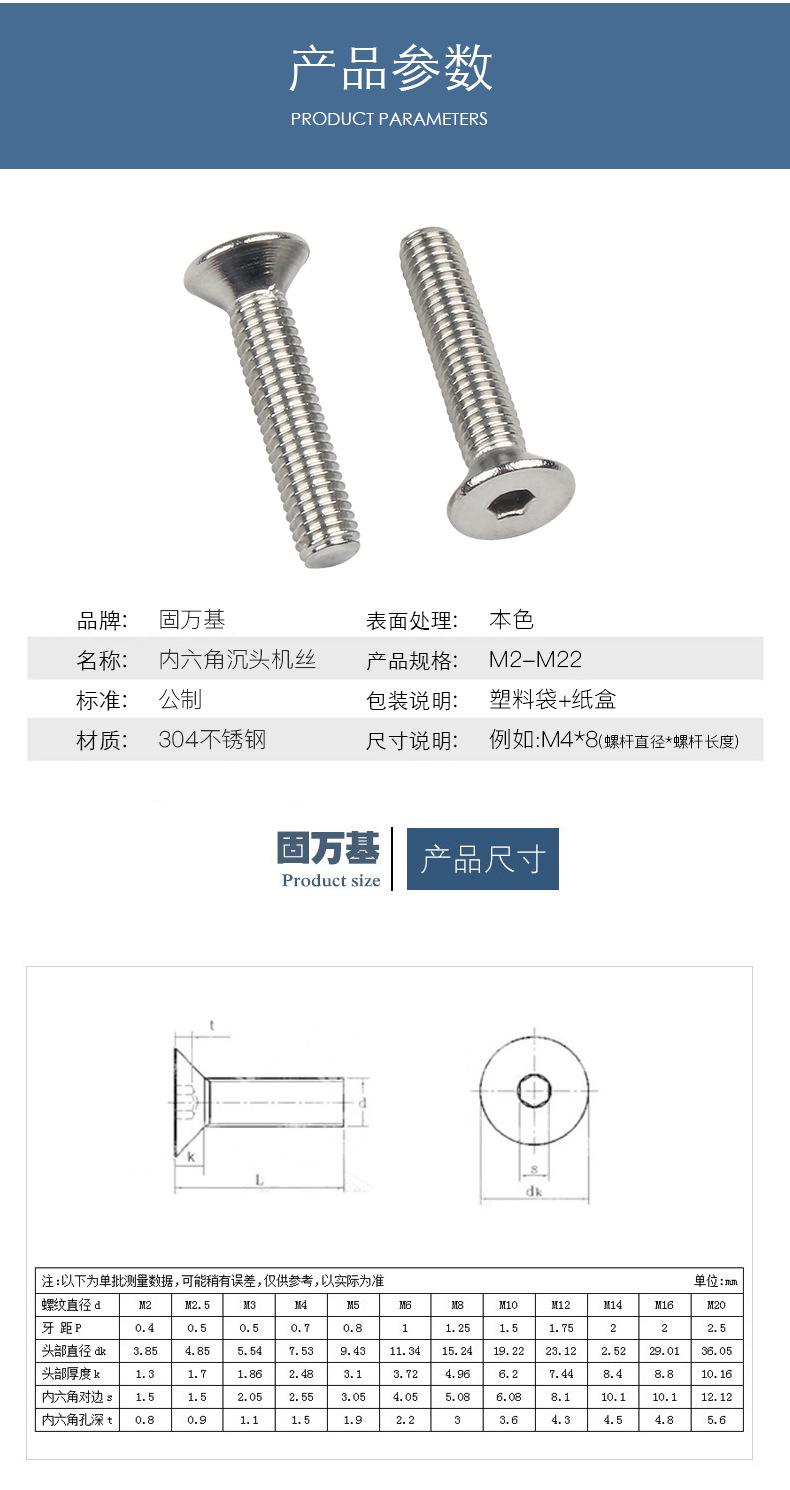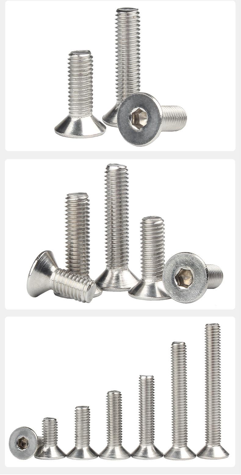 Parafuso de cabeça sextavada de aço inoxidável 304 cabeça chata parafuso de cabeça escareada parafuso de copo plano parafuso de máquina atacado M10M12