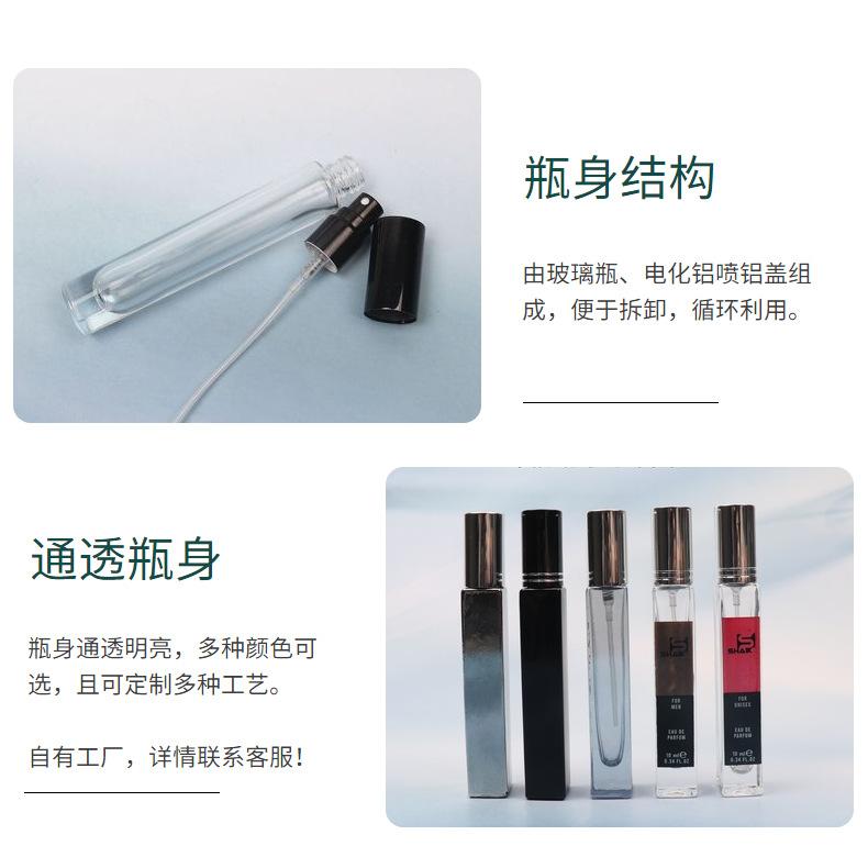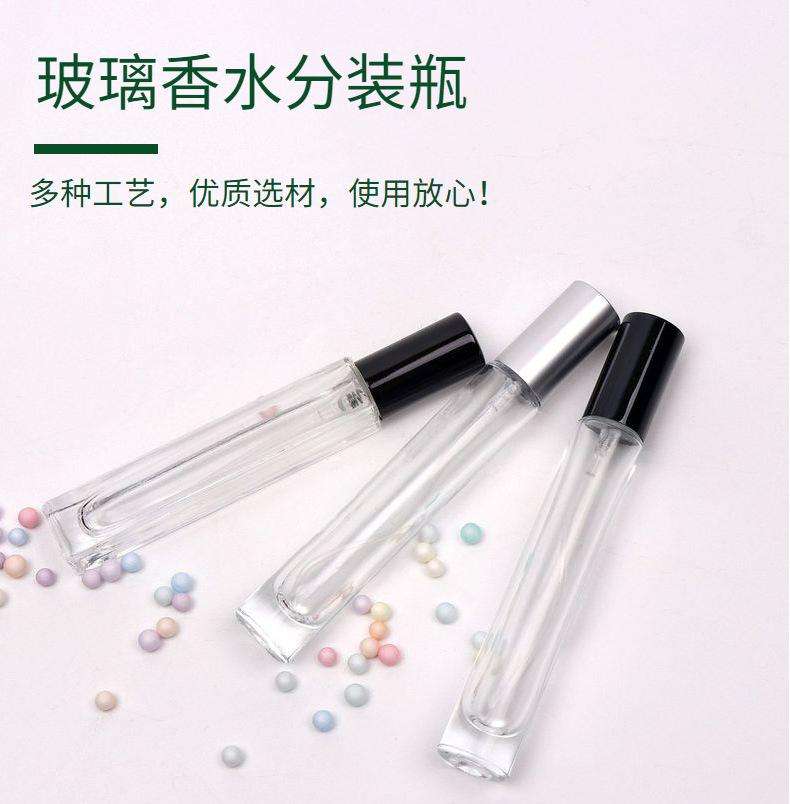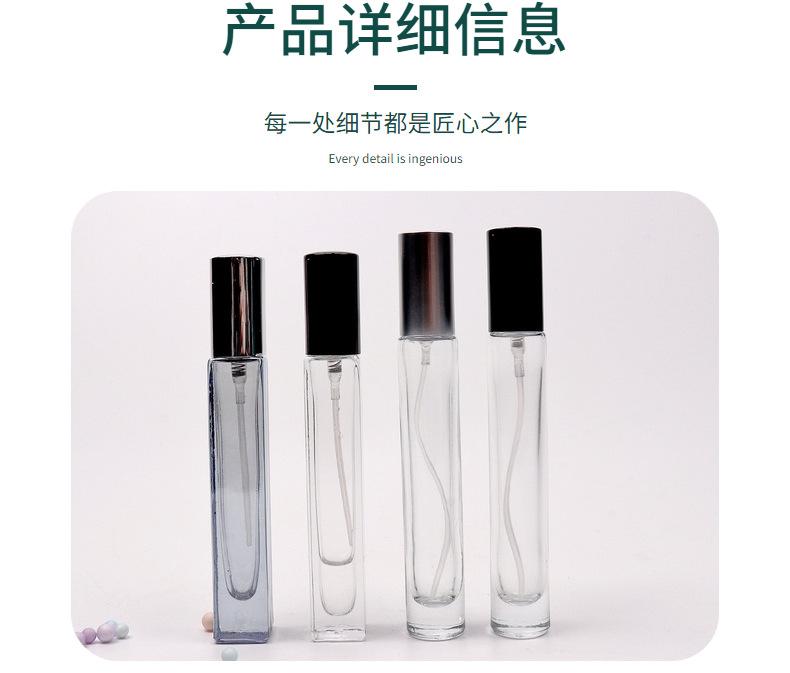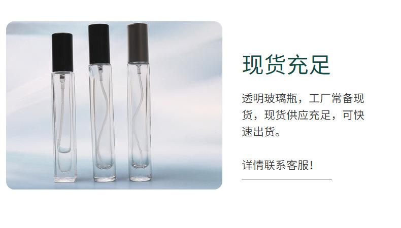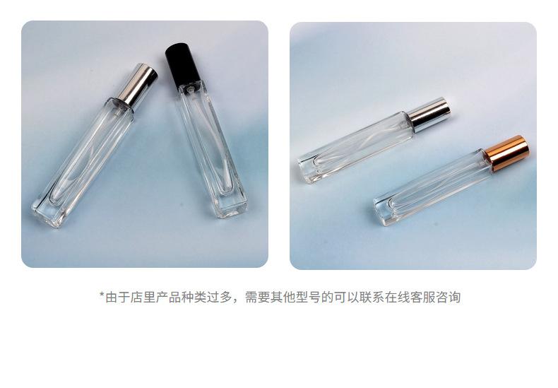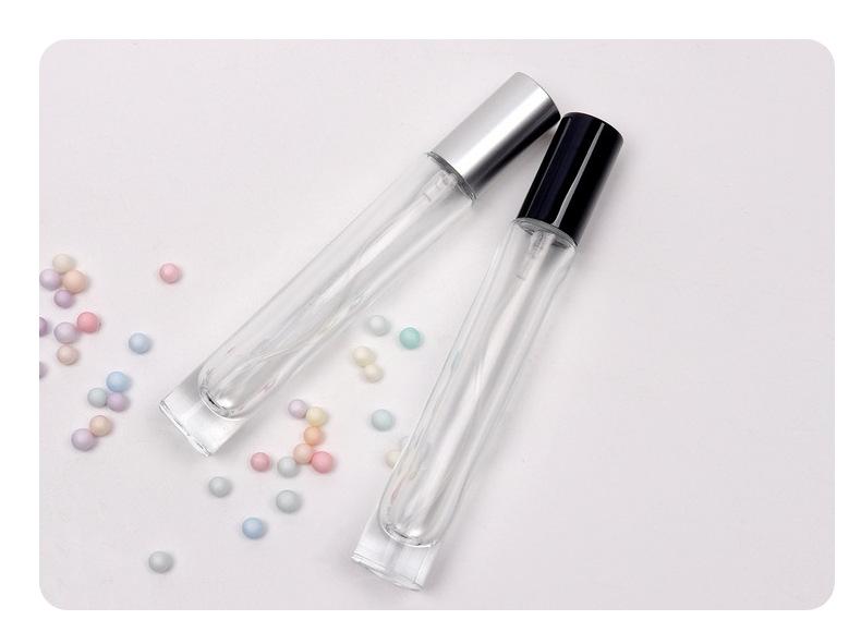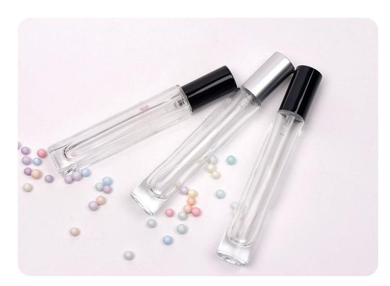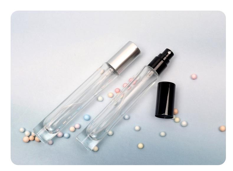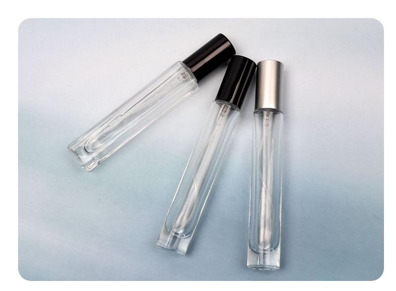 Frasco de Vidro Retangular Transparente Frasco de Perfume Spray Frasco Recarregável 10ml Frasco de Perfume de Rosca com Spray de Alumínio Eletroquímico