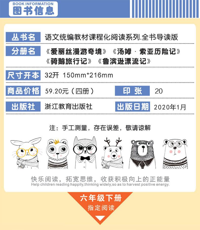 Segundo volume da barra de leitura feliz da 6ª série, 4 volumes de livros infantis, atacado, livros extracurriculares para alunos da escola primária Robinson Crusoé