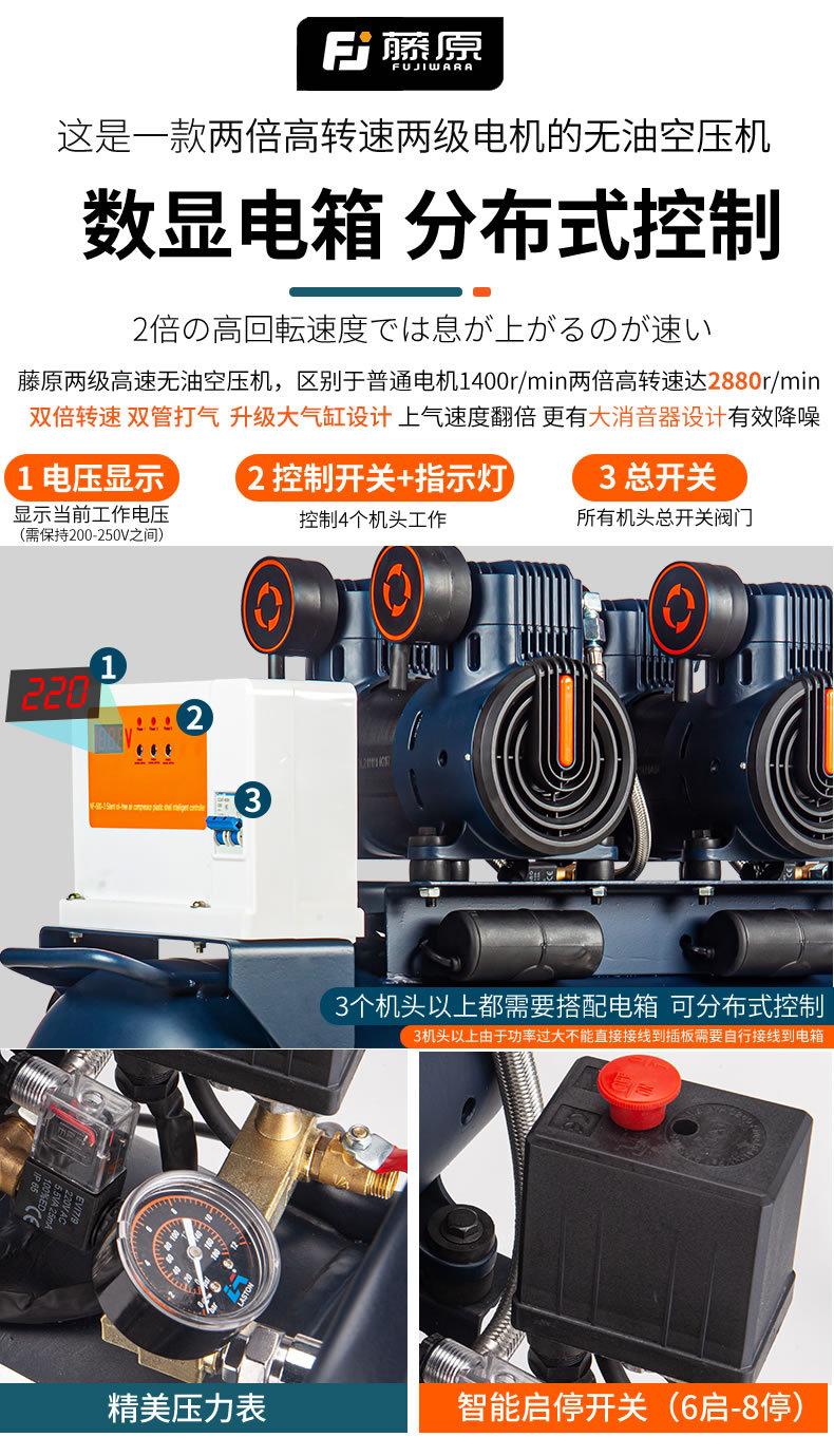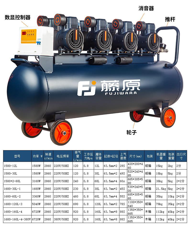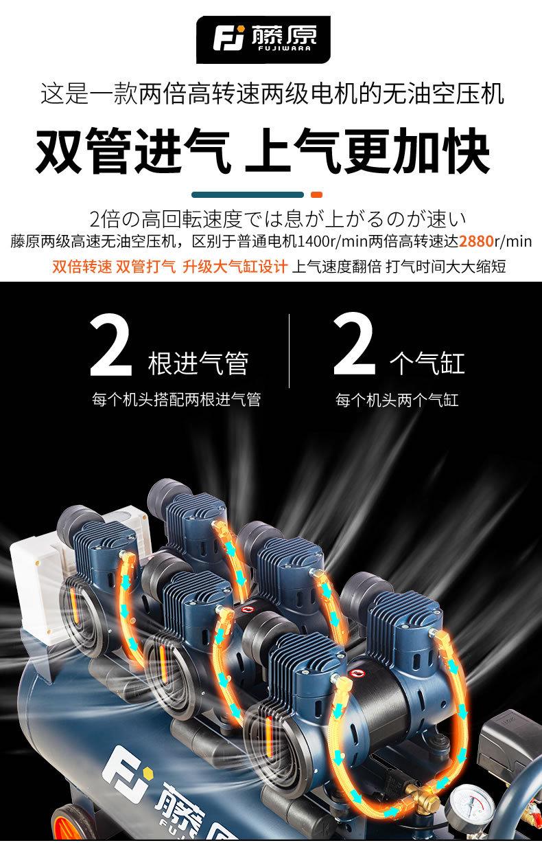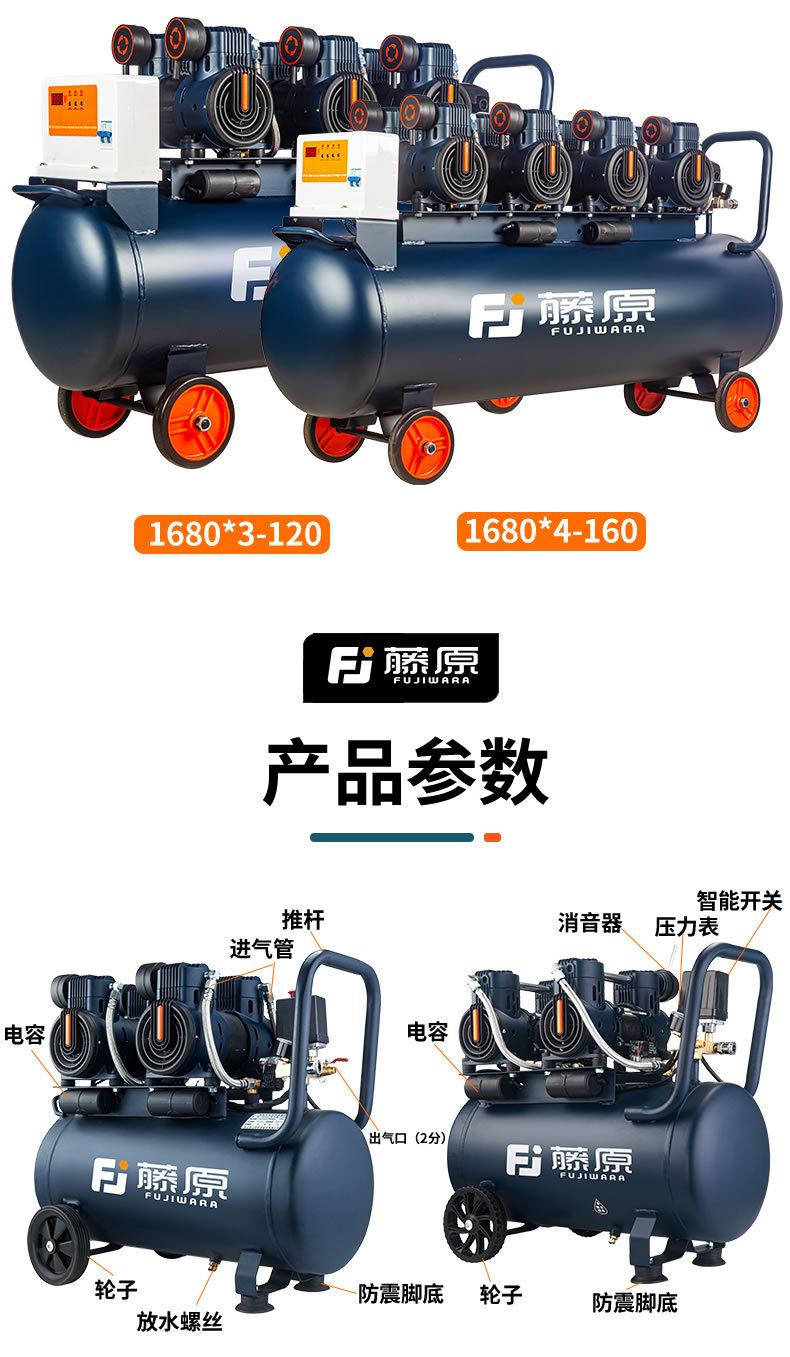 Compressor de ar mudo isento de óleo Fujihara 220V de alta potência industrial grau 1680W bomba de ar para carpintaria compressor de ar de tinta spray