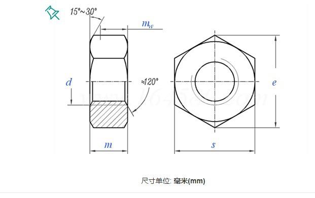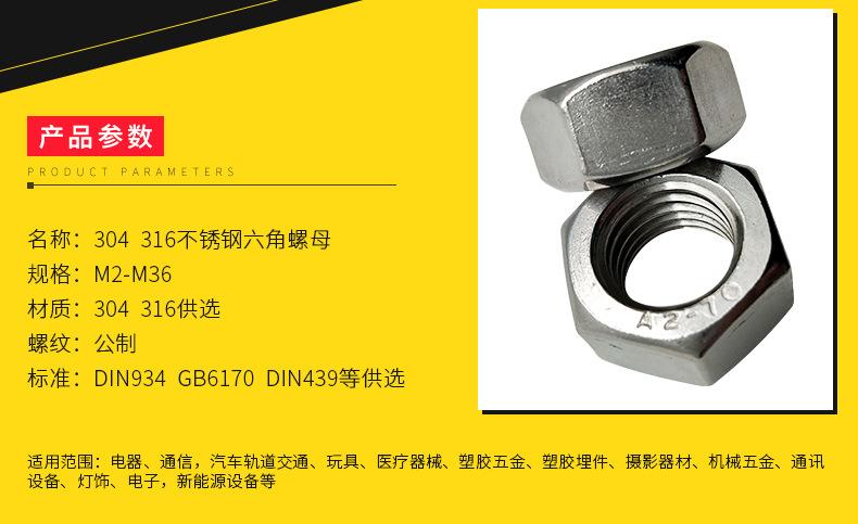 Porca sextavada externa de aço inoxidável Porca de parafuso hexagonal padrão alemão Dente fino fino 304 Porca hexagonal de aço inoxidável