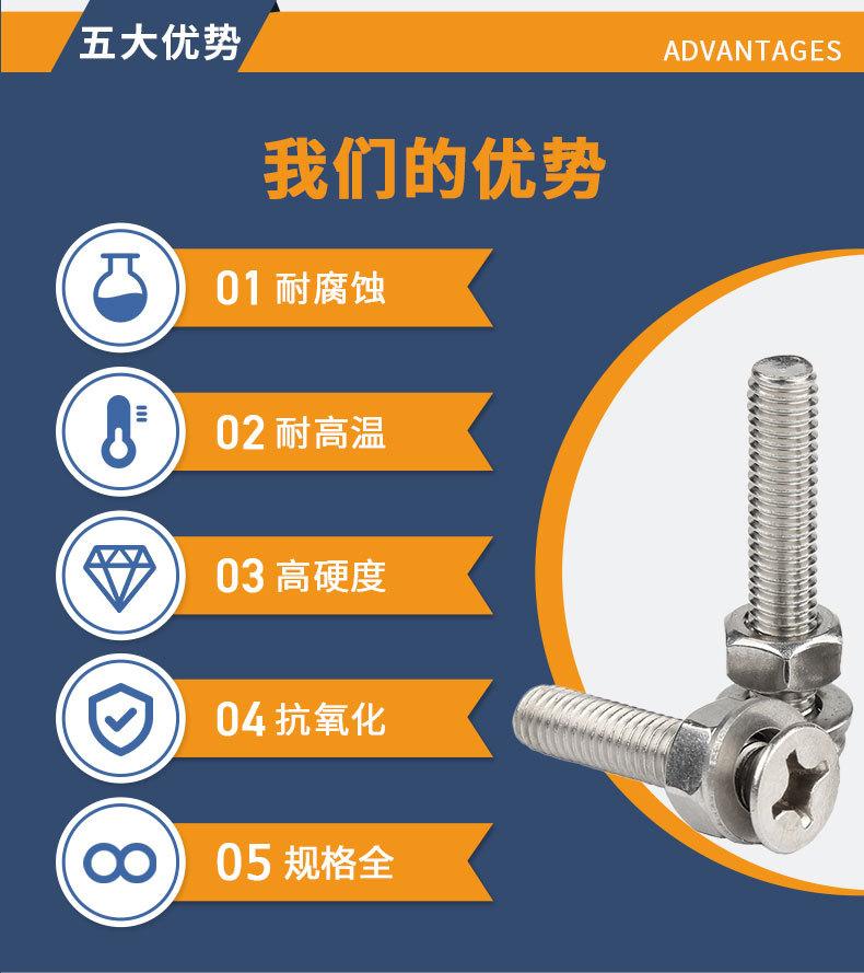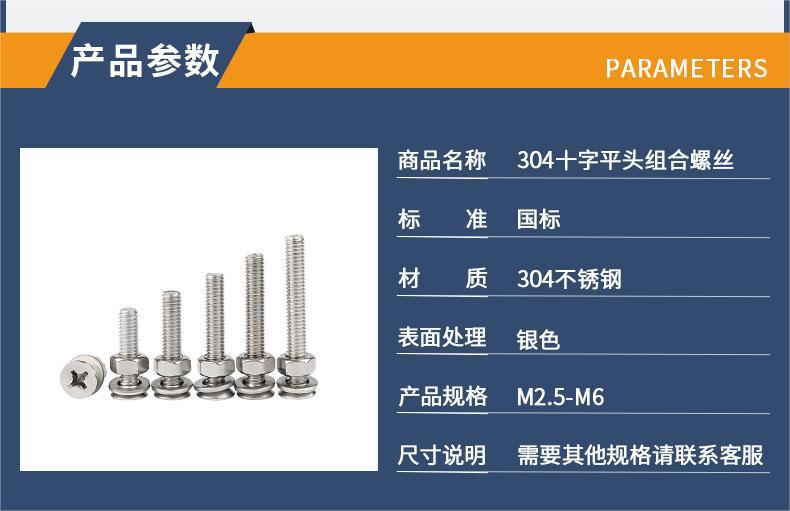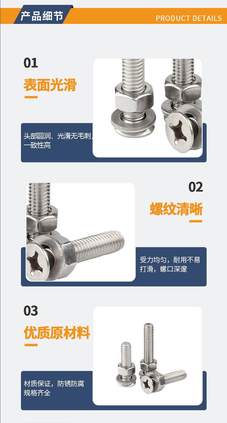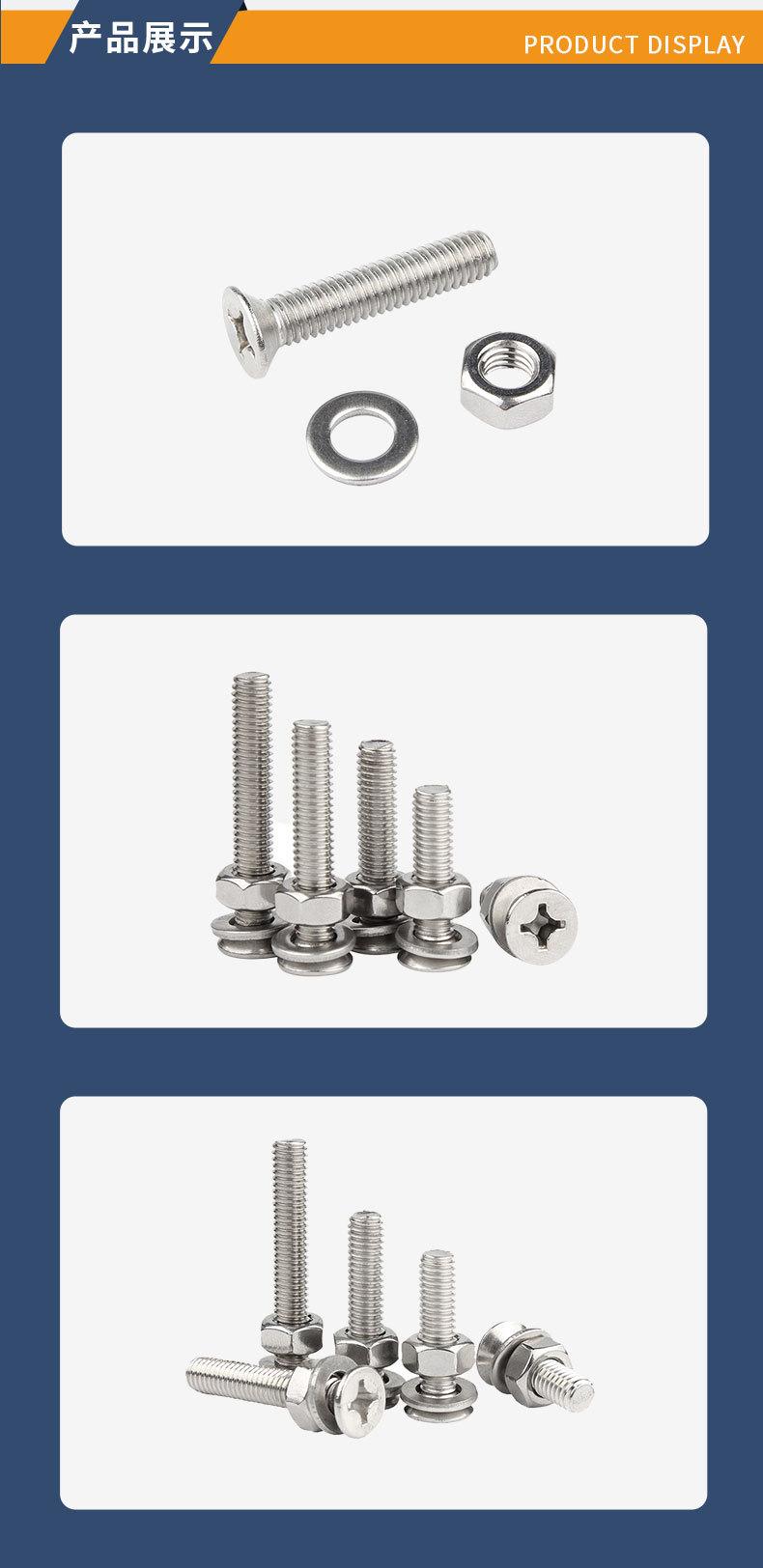 304 aço inoxidável cruz cruz cabeça chata combinação parafuso cabeça escareada mola plana porca parafuso terno M2.5M3M4M5M6