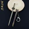 Espada chinesa antiga Han Espada Qin Shihuang Espada Ruyi Espada Yue Wang Espada 12cm Modelo de espada antiga Arma pequena Ornamentos Chaveiro