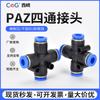 Conector de plugue rápido pneumático cruz de plástico azul de quatro vias PZA4 / 6/8/10/12 componentes pneumáticos