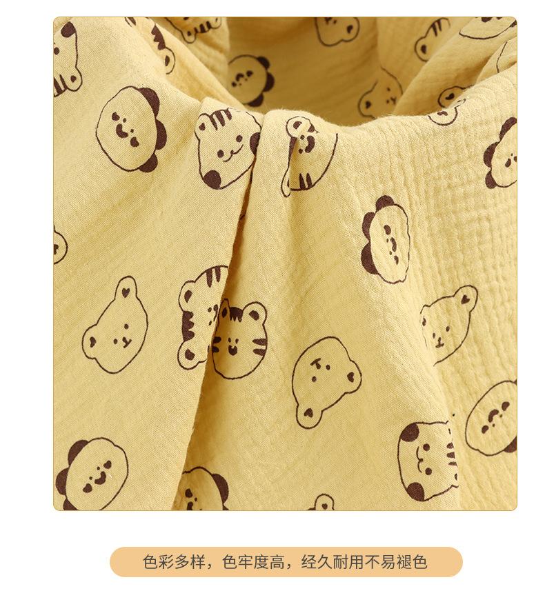 Babador de Crepe de Muselina de Algodão Estampado de Dupla Camada com Estampa de Desenho Animado