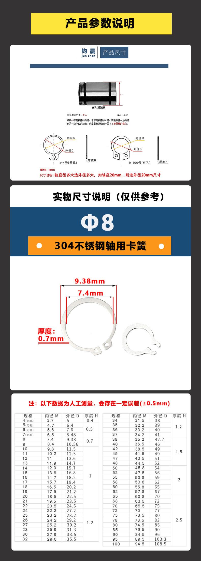 Anel de Retenção de Eixo de Aço Inoxidável 304, Abraçadeira de Eixo, Anel Elástico de Eixo de Rolamento, Anel Elástico Tipo C, Abraçadeira Externa de Eixo em Forma de C, Padrão Nacional