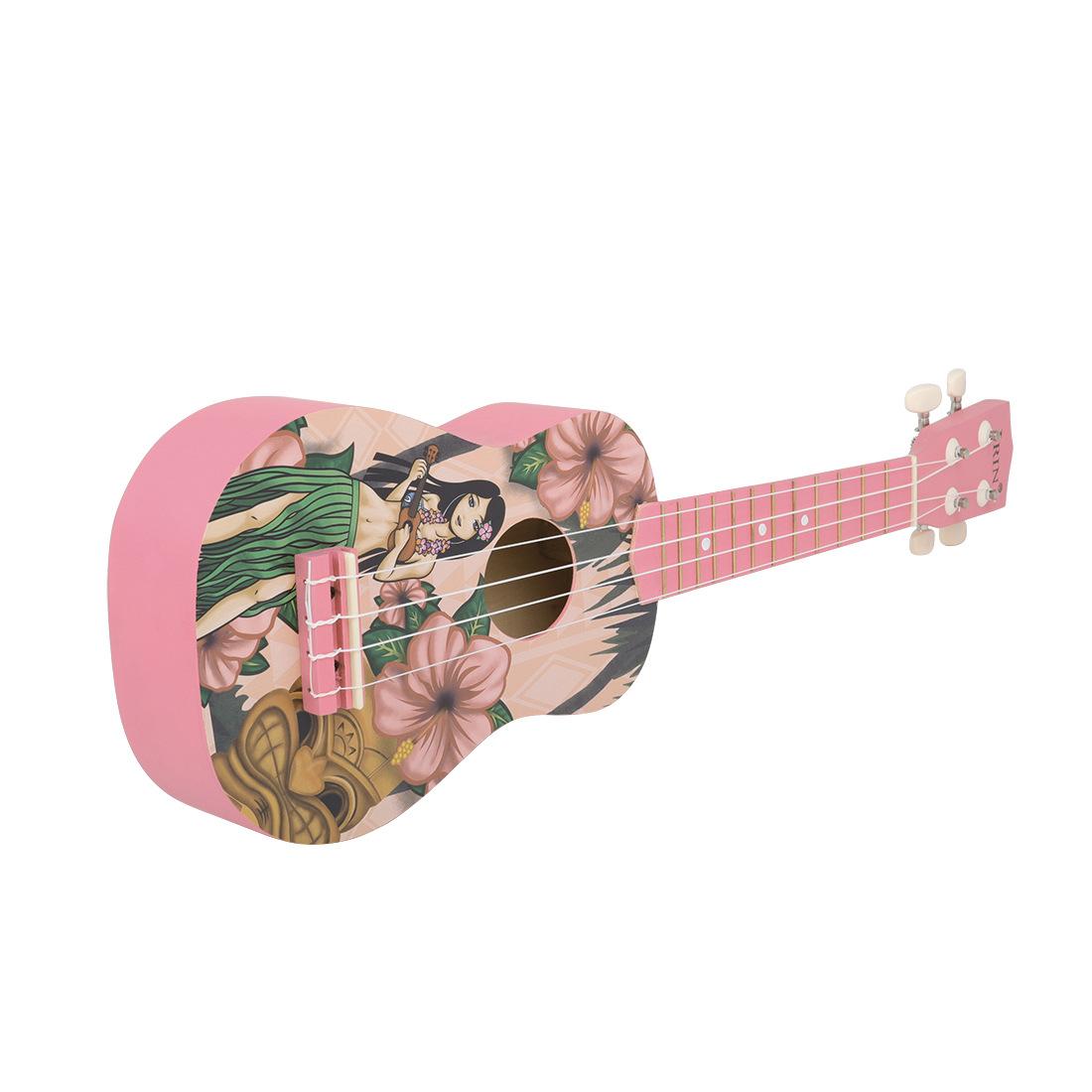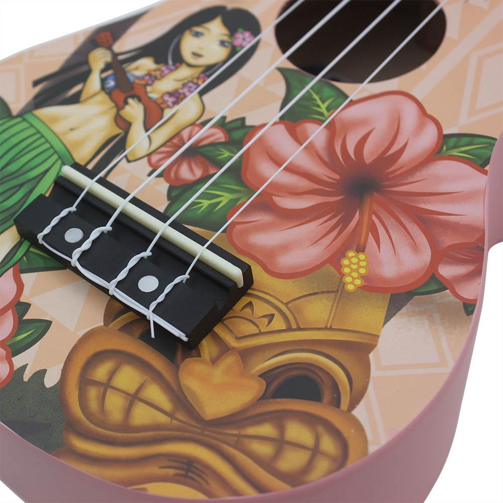 Nome do produto: Ukulele havaiano de 21 polegadas (cor da ponte: rosa e preto são enviados aleatoriamente)