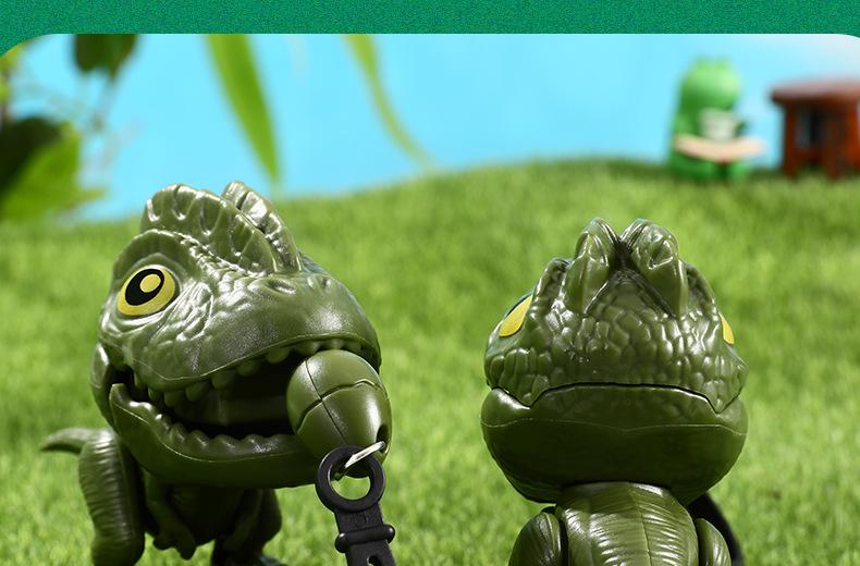 Criativo desenho animado puxar linha mordida dinossauro chaveiro descompressão brinquedo boneca casal mochila pingente pequeno presente atacado