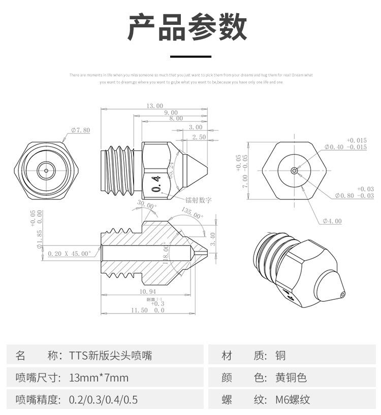 Acessórios para impressora 3D TTS bico de ponta 1,75 mm consumíveis todo o bico de latão de metal em vez de bico MK8