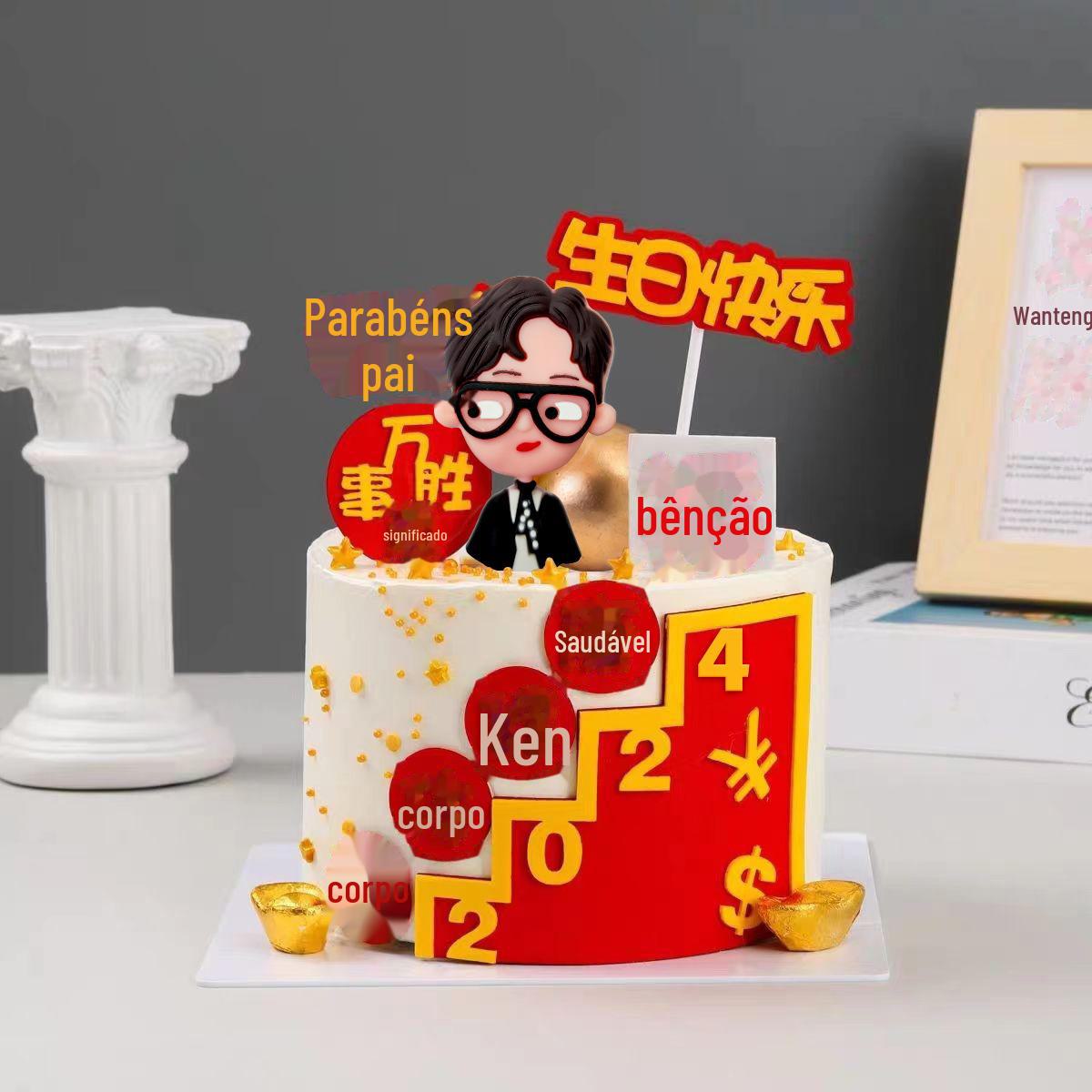 2024 Internet Celebridade Dia dos Pais decoração do bolo pai feliz aniversário saúde e boa sorte saudação plug-in