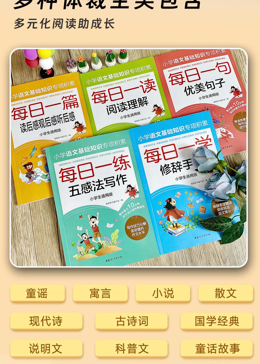 Os alunos do ensino fundamental leem composições todos os dias, belas frases, acúmulo de habilidades de escrita, leitura matinal, belos livros de material didático