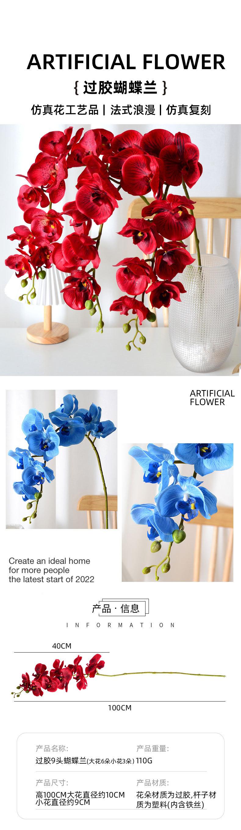 Sensação de filme 9 Phalaenopsis Simulação Ramo Único Flor Falsa Casa Decoração de Mesa de Jantar Decoração Floral Flor de Casamento