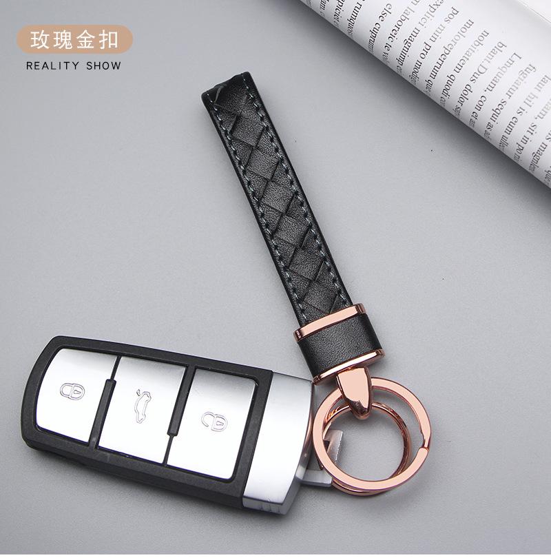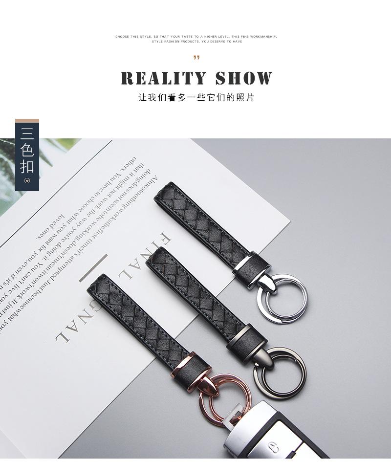 A camada externa desta alça de chave é feita de couro genuíno, que é trançado e costurado. É elegante e bonito, de alta qualidade, macio e confortável ao toque, e econômico.
