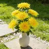 Foto tela simulação fábrica de flores atacado de alta qualidade Qingming Festival flor falsa estilo jardim chinês sete crisântemo de seda dourada buquê de flores de seda
