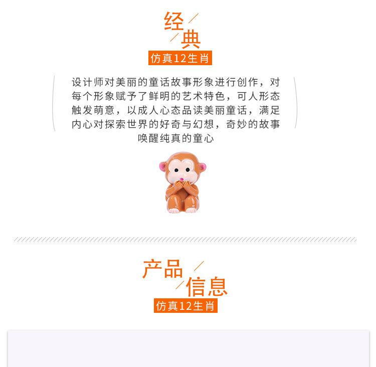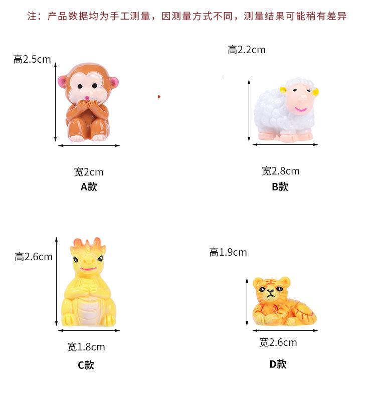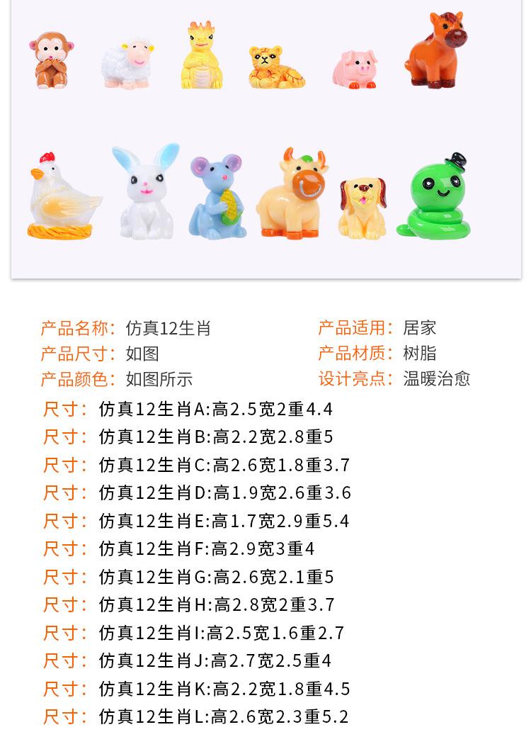 Monkey, Sheep, Horse, Dog, Rabbit, Snake, Tiger, Chicken, Cow, Dragon, Rat, Pig, 12 a set.