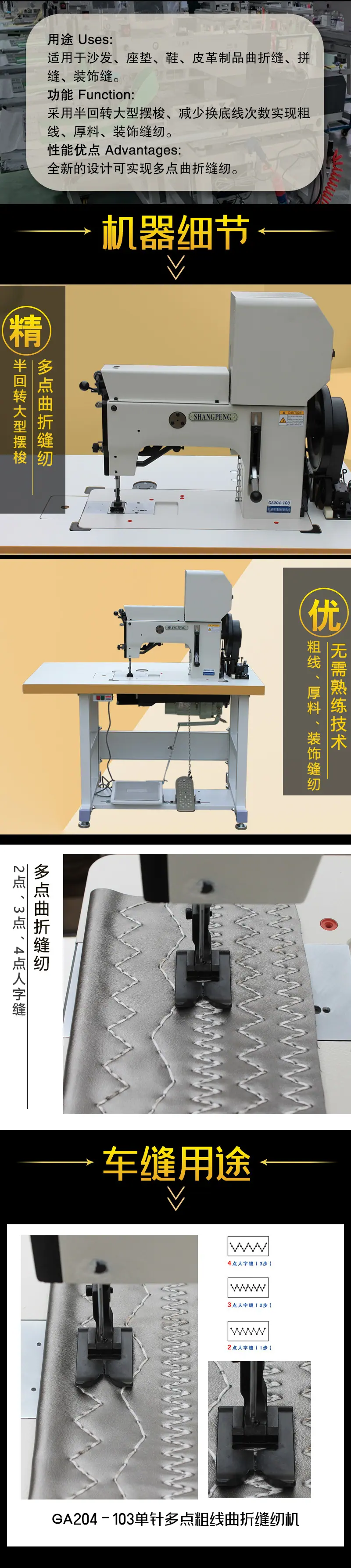 Ga204-103 Máquina de Costura Zigzag Industrial de Agulha Simples e Pontos Múltiplos para Linha Grossa Equipamento de Costura Máquina de Costura Industrial