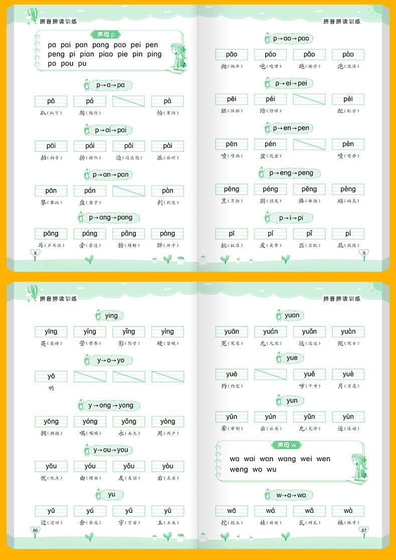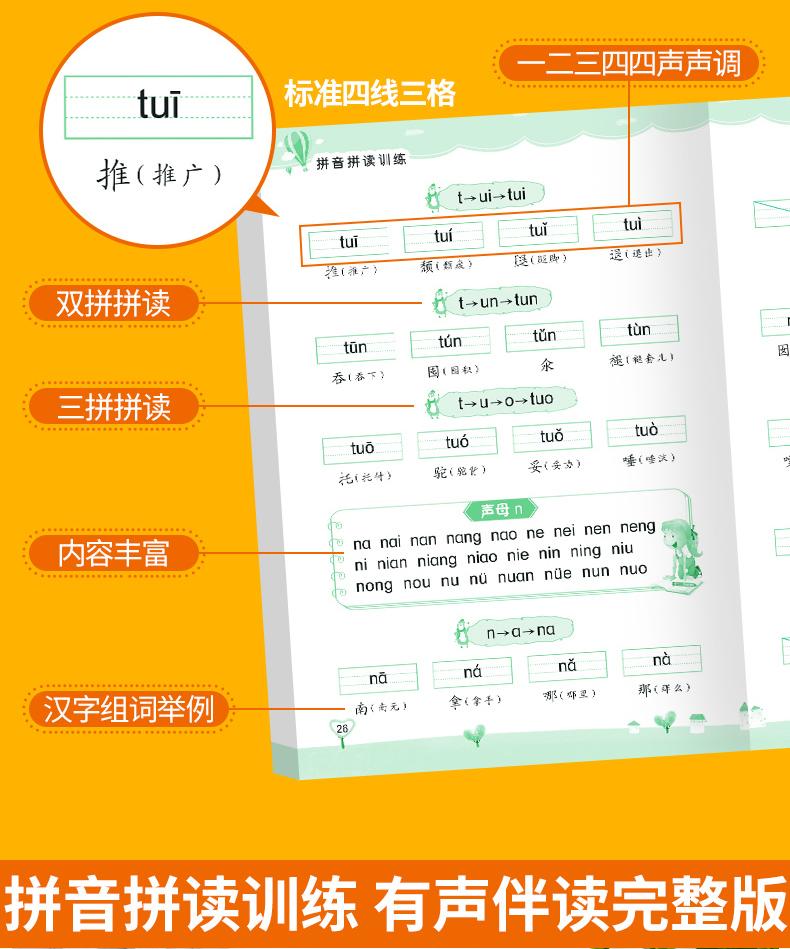 Escola primária de chinês treinamento especial pinyin chinês treinamento de ortografia alunos do ensino fundamental rima consoante inicial geral livro de ensino básico