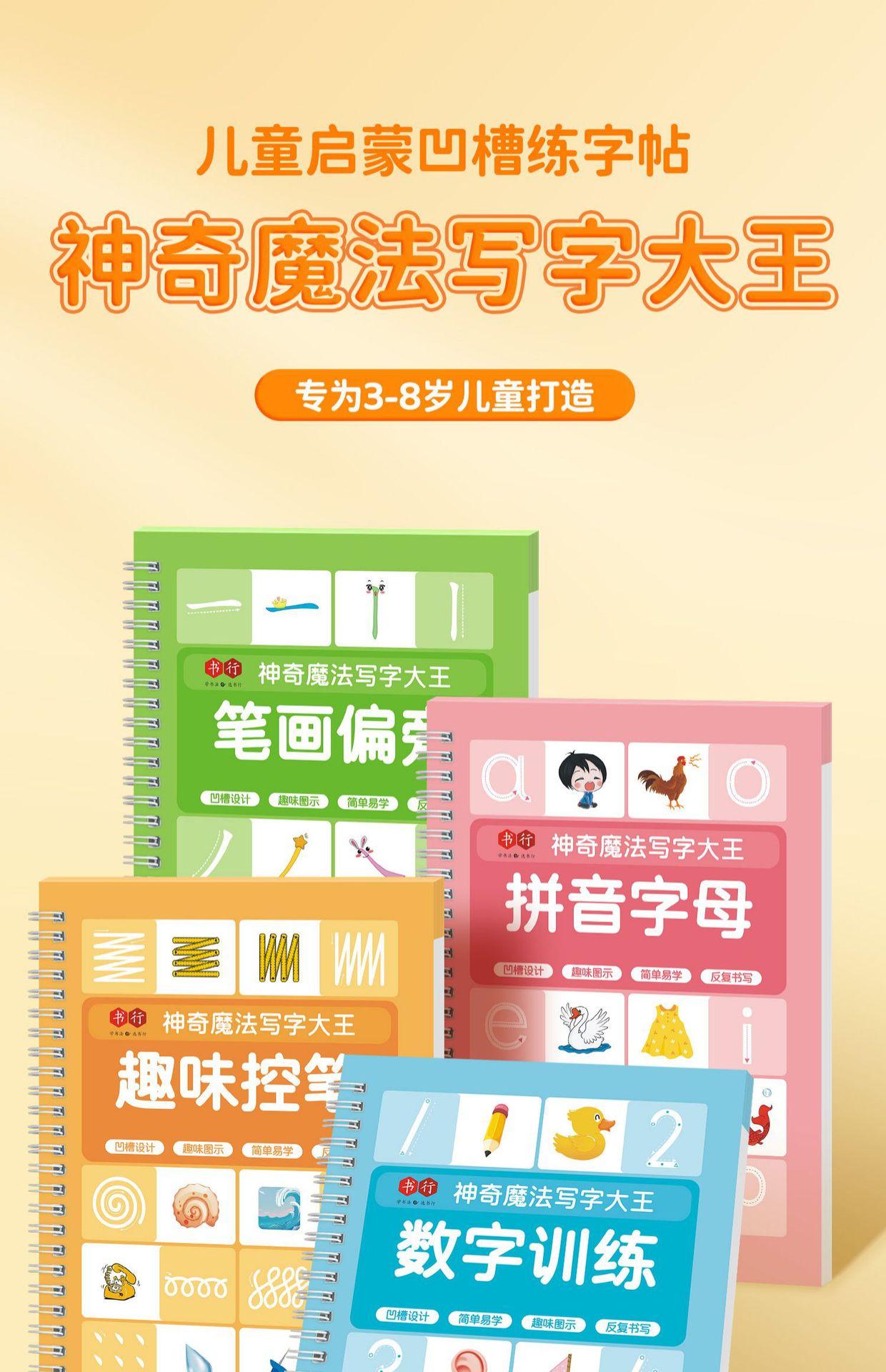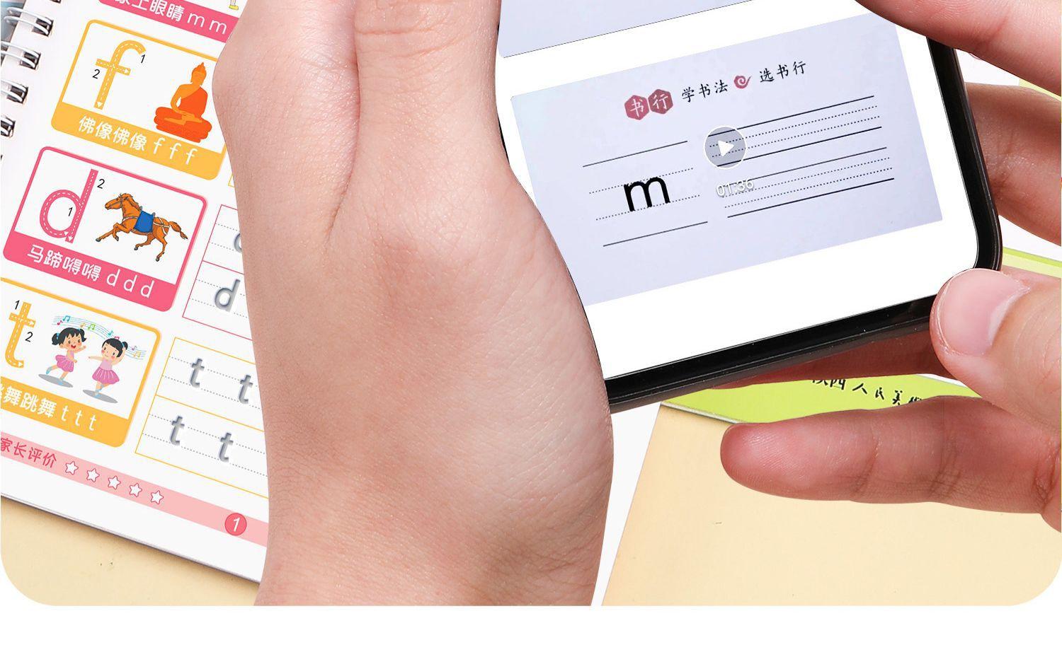 Jardim de infância groove digital stroke copybook crianças em idade pré-escolar iluminação controle caneta prática de treinamento copybook jovem rastreamento livro vermelho