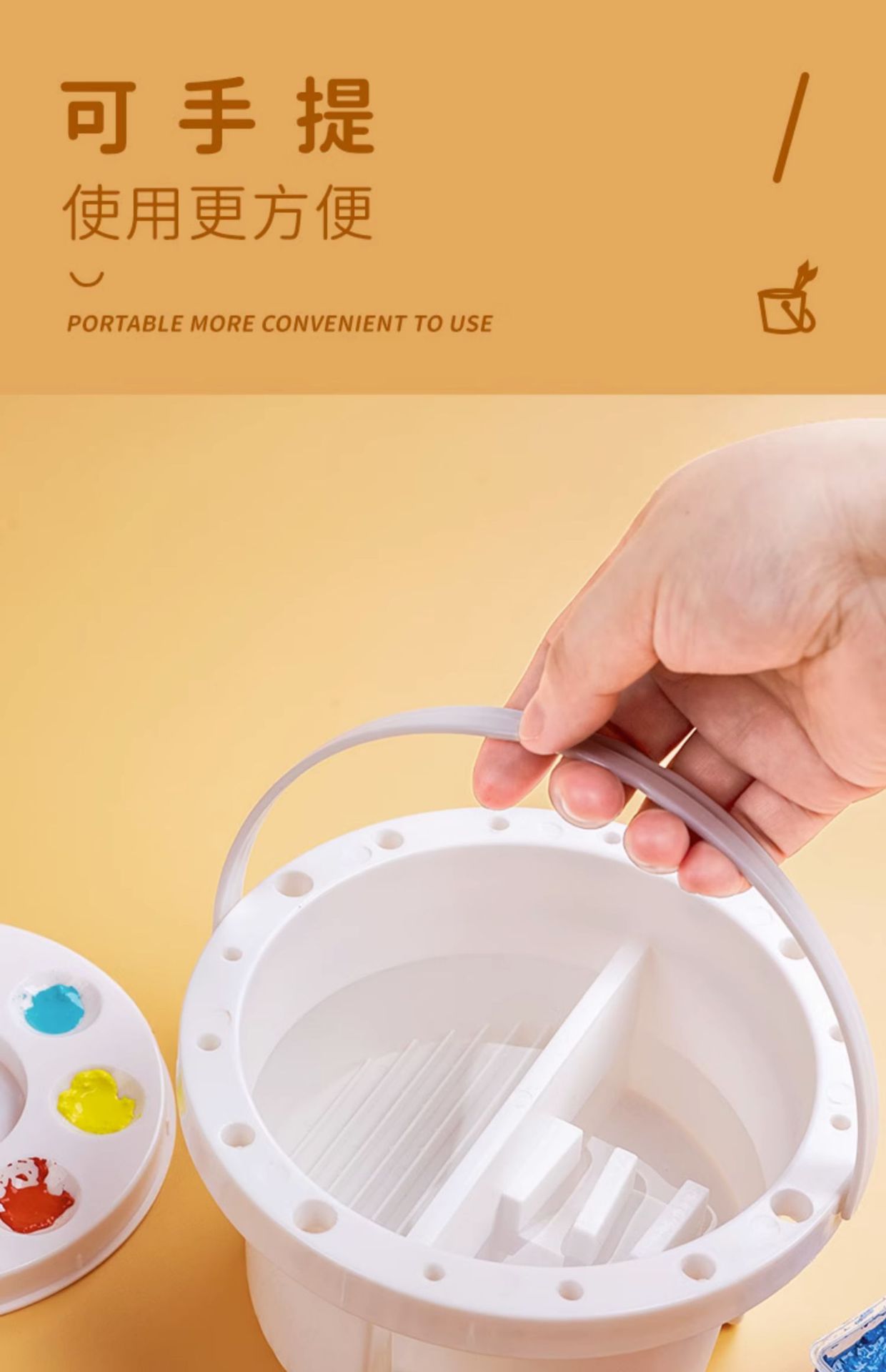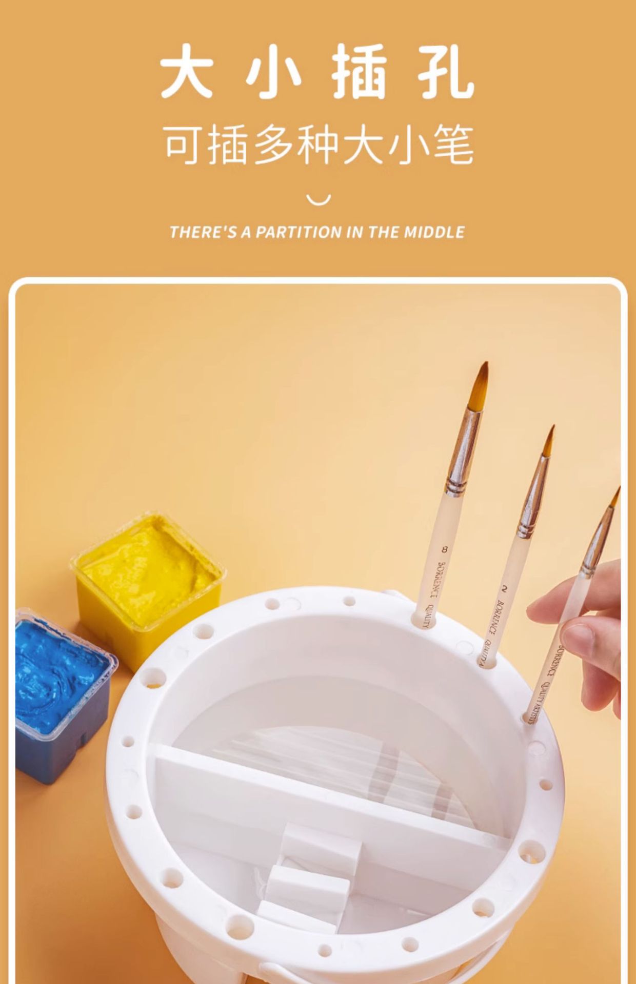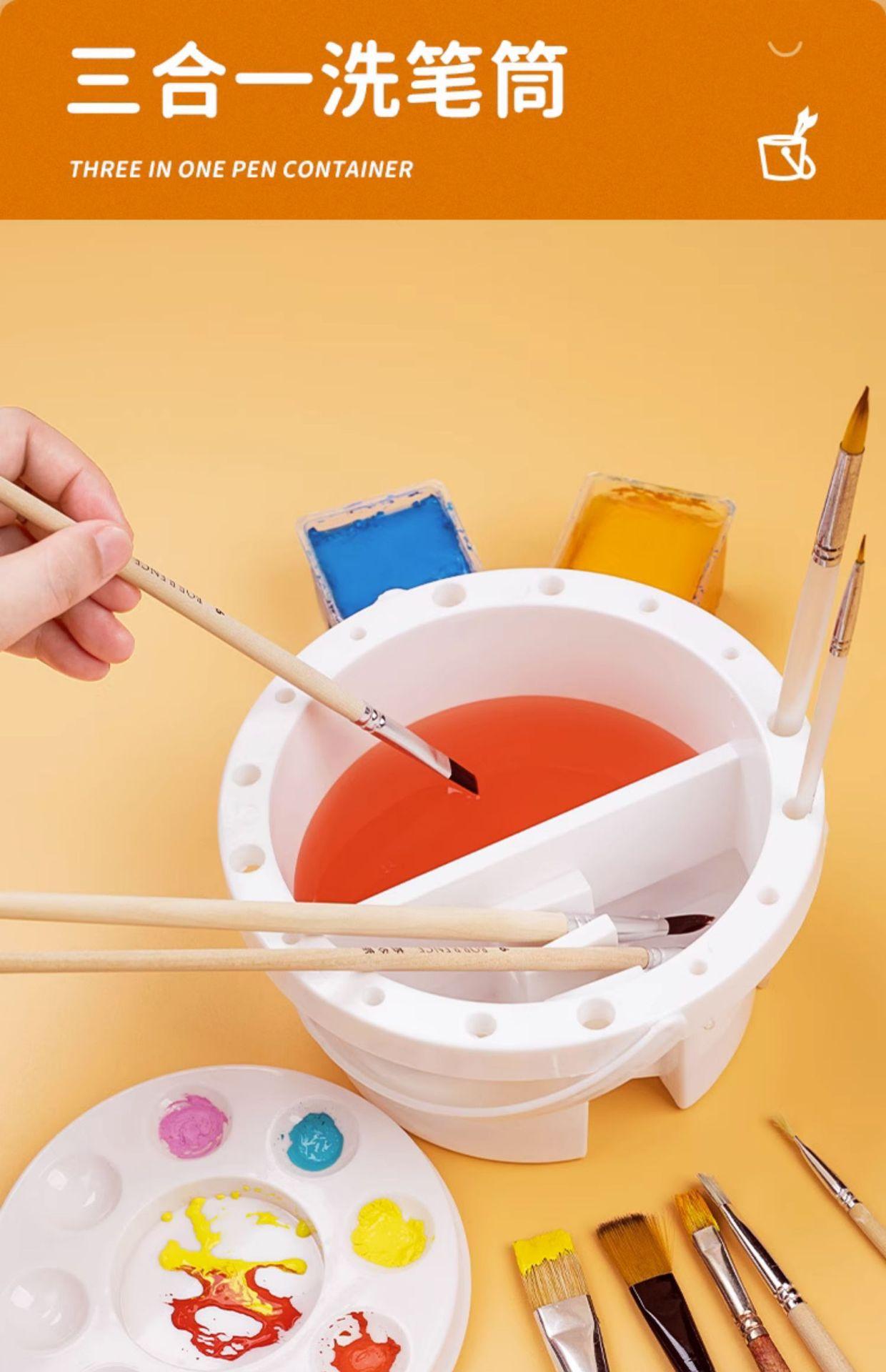Compre Lavadora de caneta especial para crianças, pintura de plástico branco, balde de lavagem de caneta, arte portátil, caneta inserível, escova separadora, balde de lavagem no atacado no Joom.pro