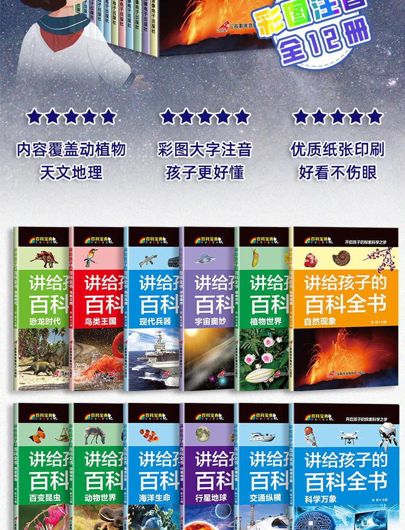 Um conjunto completo de 12 livros de leitura extracurricular para crianças, enciclopédia científica popular, livros de leitura extracurricular para primeira e segunda séries