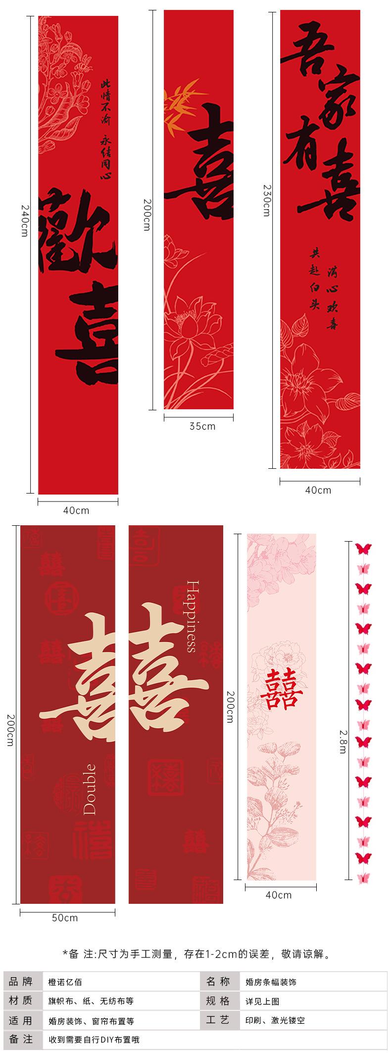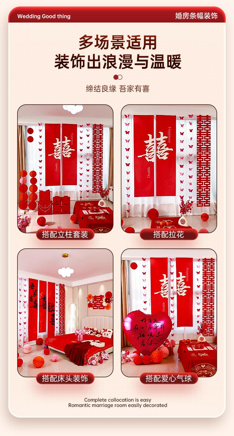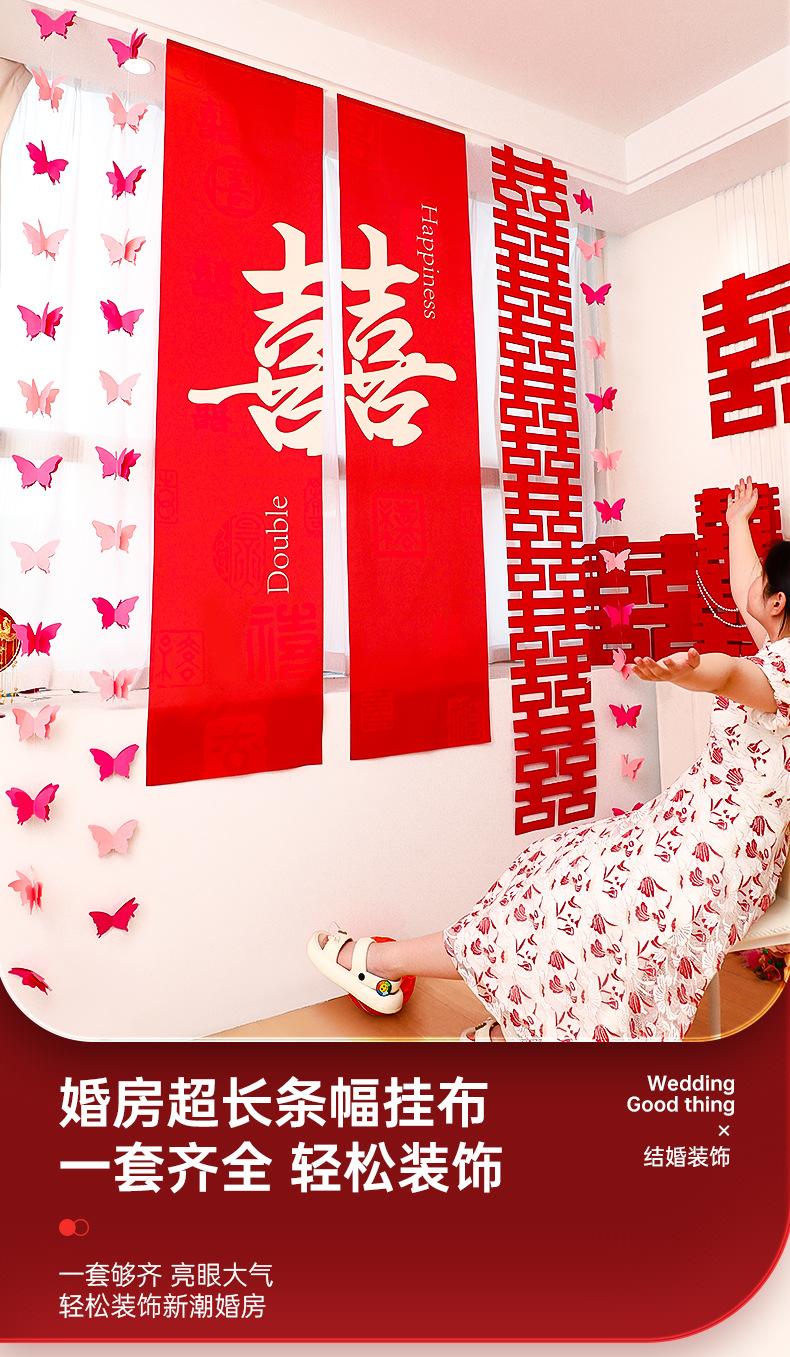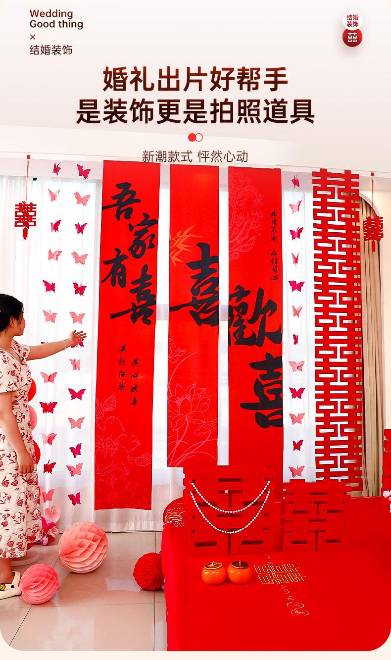 Conjunto de decoração de sala de casamento completo casamento nova casa cortina borboleta decoração homens e mulheres quarto sala de estar longo banner decoração de casamento