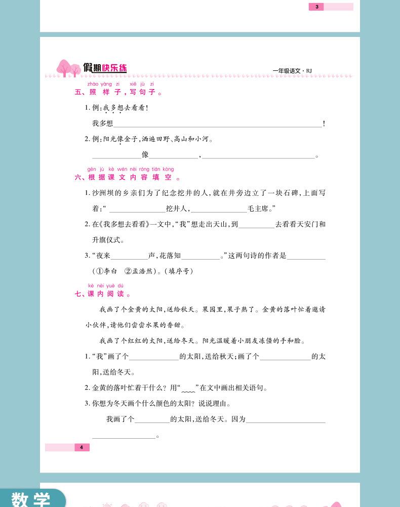 Tarefa de Verão para as 1ª, 2ª, 3ª, 4ª, 5ª e 6ª séries, Sincronizada com os Livros Didáticos do Ensino Fundamental do Ministério da Educação para Chinês, Matemática e Inglês