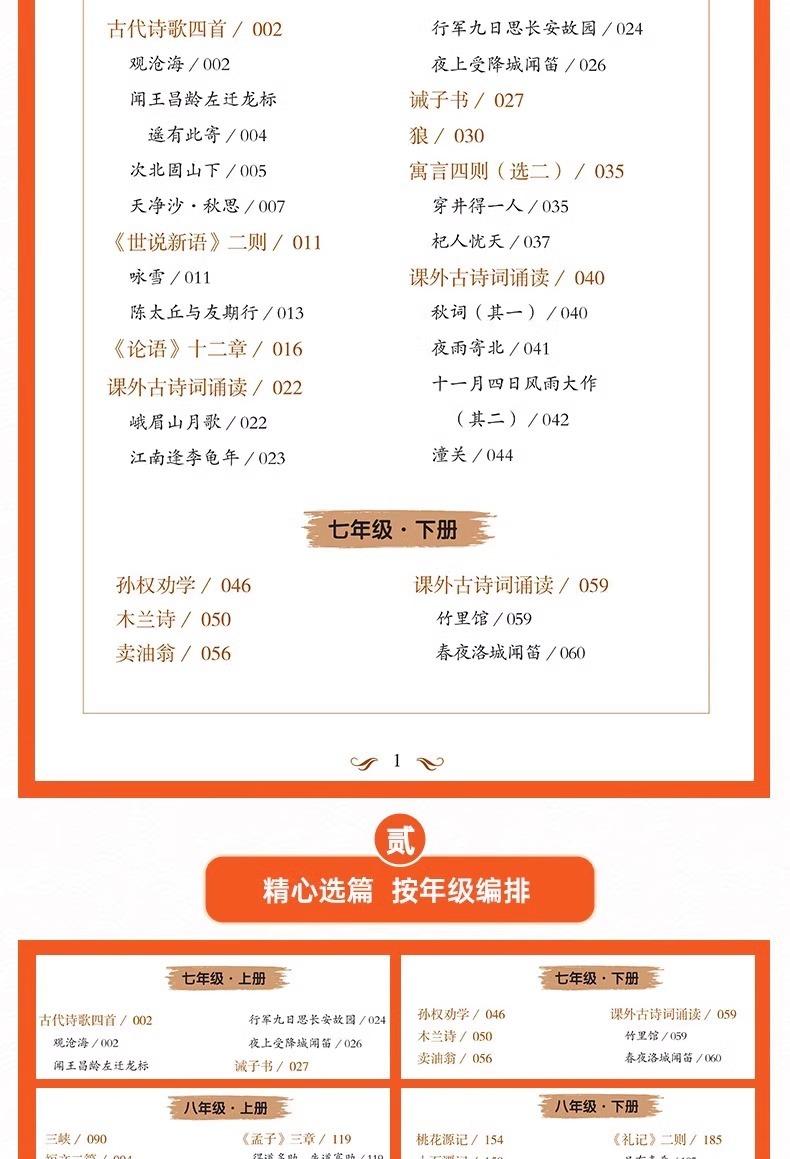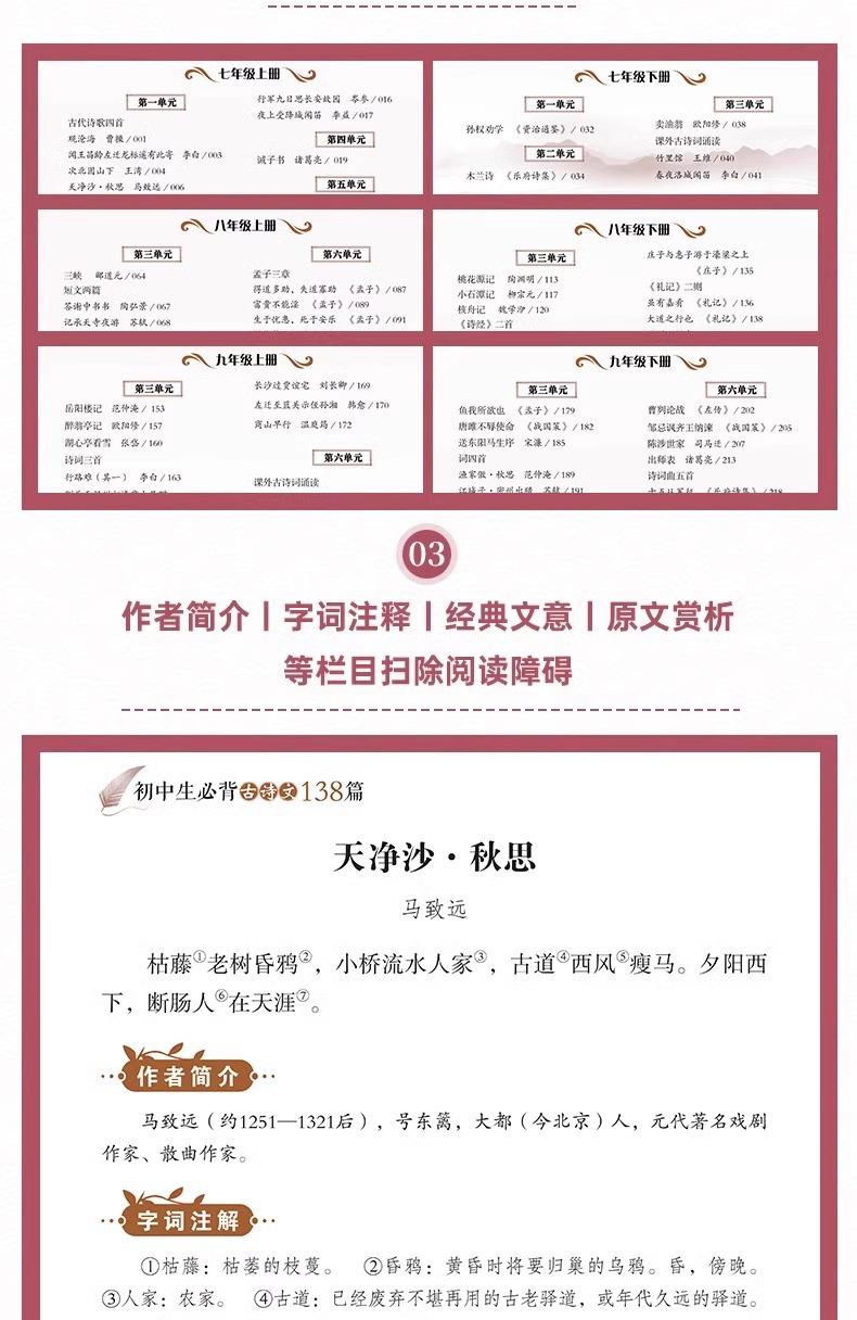 [Single Book] Junior High School Students Must Memorize 138 Ancient Poems, [Single Book] Junior High School Classical Chinese