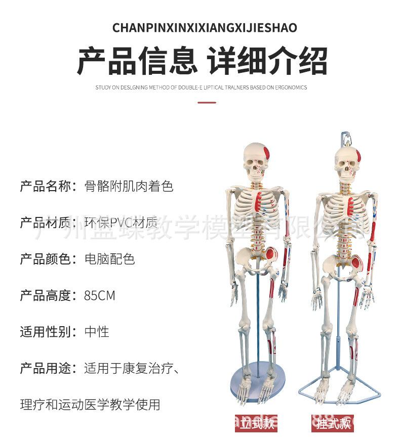 Compre Modelo de esqueleto humano de 85cm com a suspensão médica móvel do espécime de esqueleto do ensino da coloração do músculo no atacado no Joom.pro