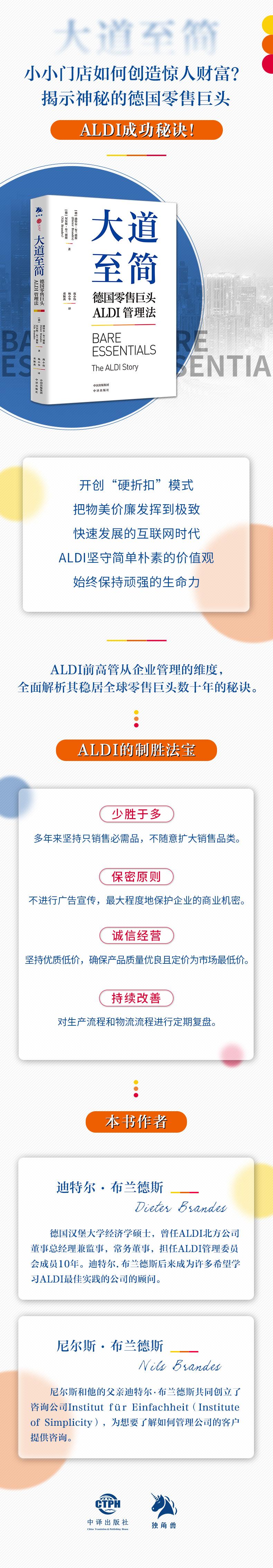 Desde sua primeira publicação em 1998, este livro tem se mantido no topo das listas de mais vendidos e foi traduzido para inglês, coreano, português, holandês e outros idiomas, com vendas de mais de 100.000 exemplares. Com base em sua prática pessoal e experiência em gestão, o autor revela aos leitores o perfil corporativo da ALDI, sua cultura corporativa, seus métodos organizacionais e de liderança, seus princípios de negócios e eventos e respostas importantes para o desenvolvimento da ALDI. Este livro discute e analisa sistematicamente a gestão corporativa, as estratégias competitivas e o processo real de desenvolvimento corporativo. A obra se aprofunda em como o "sistema ALDI" alcançou grande sucesso. A ALDI é atualmente uma das varejistas preferidas do mundo, com mais de 10.000 lojas em quase 20 países e regiões. Marketing, etc.