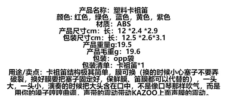 Atacado de plástico kazoo kazoo kazoo iniciante pequeno grupo fácil de aprender a tocar instrumento grupo de cartas flauta