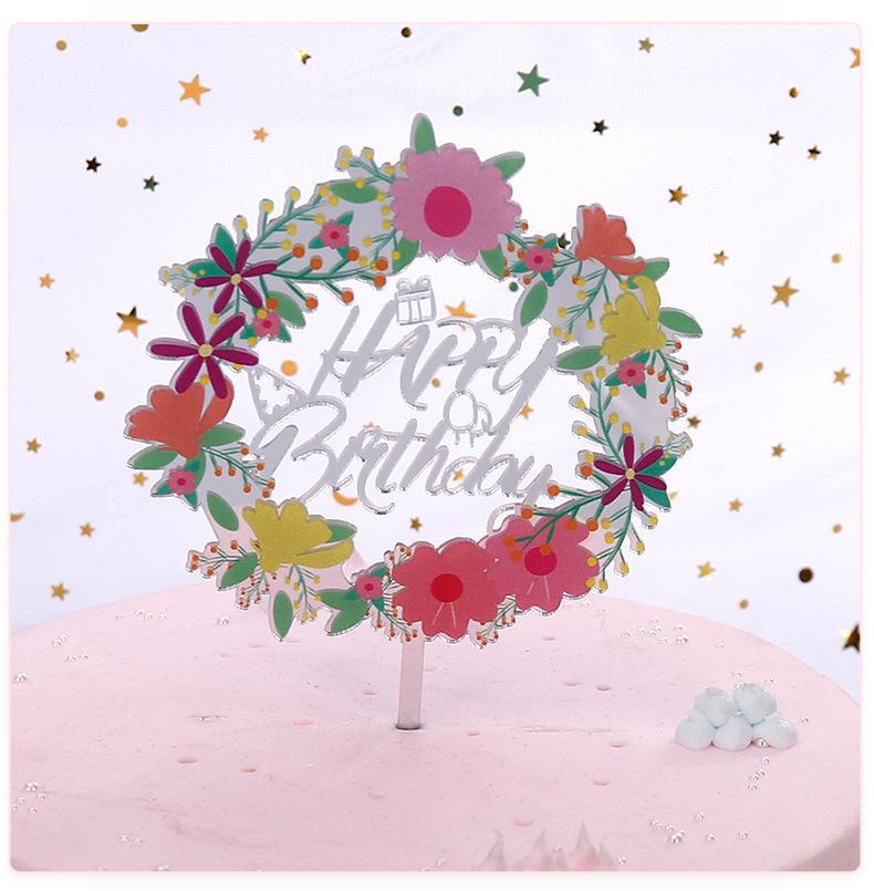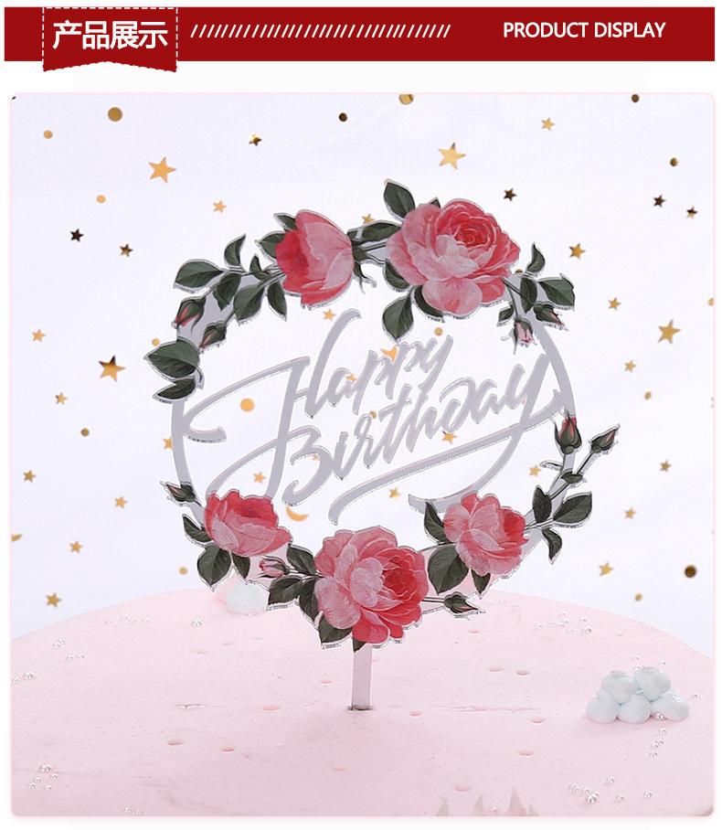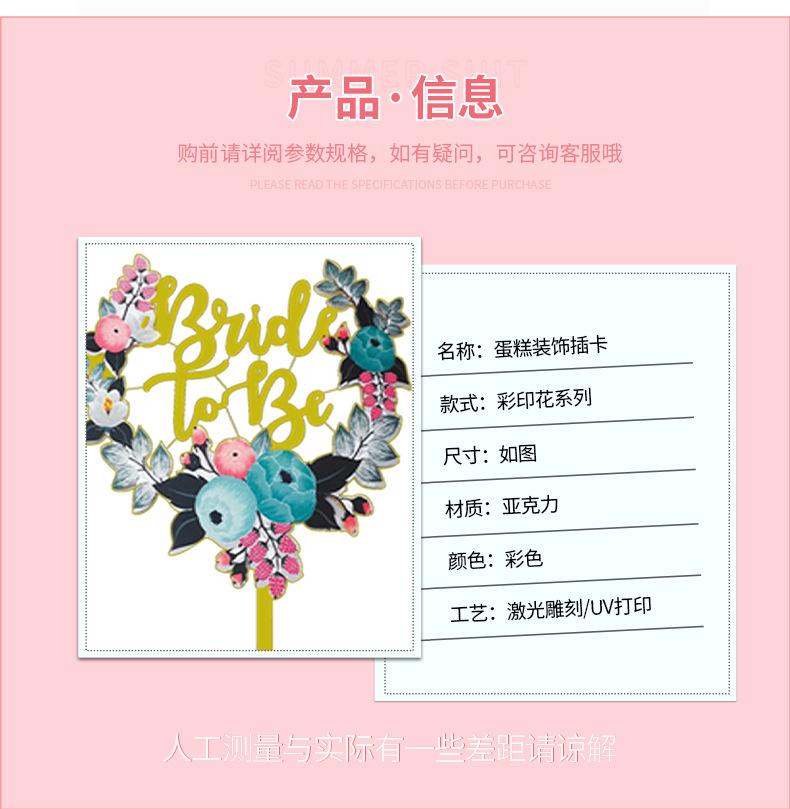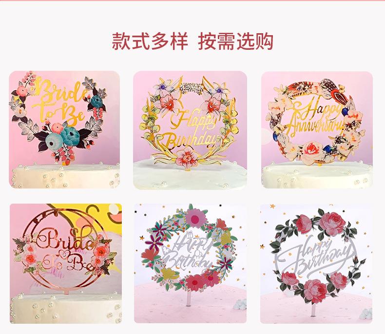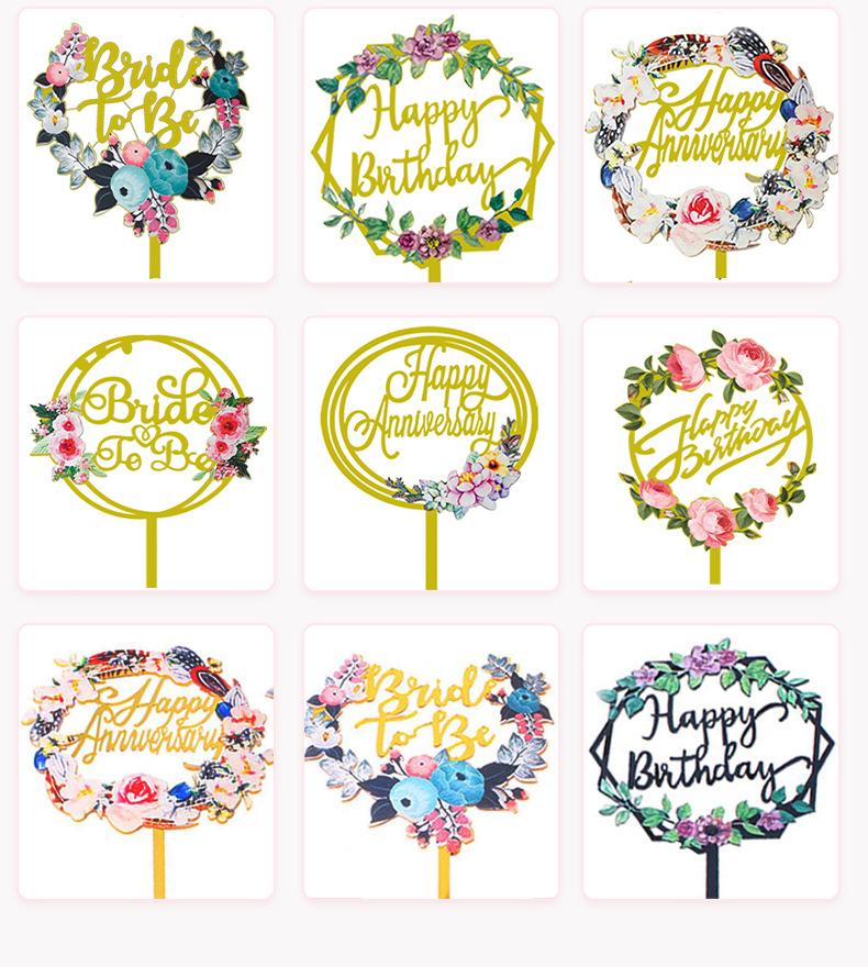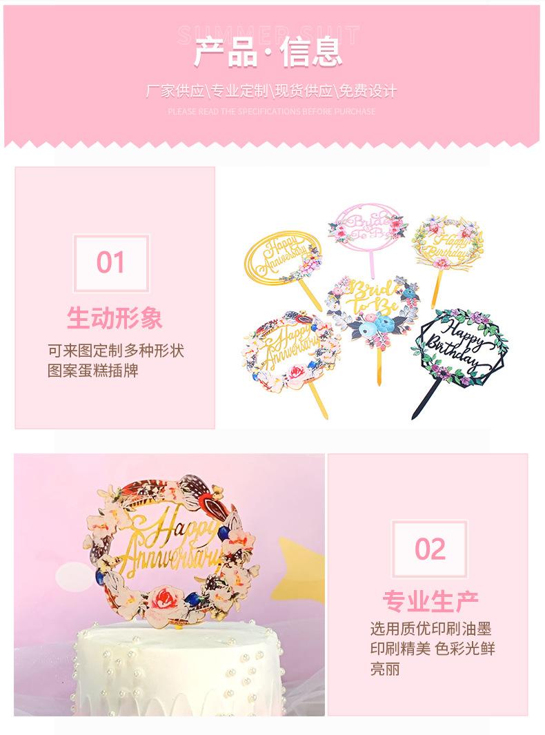 Impressão a cores transfronteiriça acrílico bandeira decoração do bolo plug-in inserção de cartão de casamento de aniversário estilo europeu e americano mesa de sobremesa de cozimento