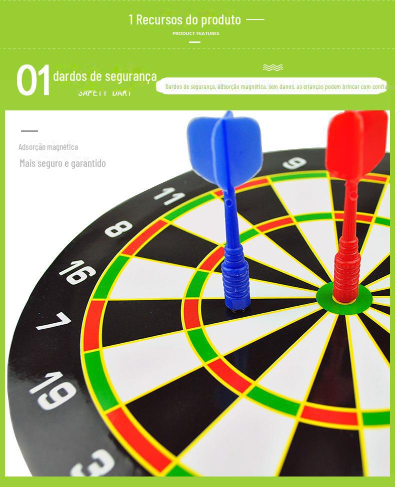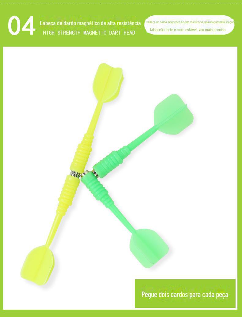Descrição: Este frisbee é relativamente barato, mas tem bom magnetismo. Depois que você o joga no disco, ele não cai. Em um conjunto, há 2 dardos coloridos. Um alvo, depois que você o joga no alvo, ele gruda. Os dardos são cabeças planas magnéticas. Existem várias áreas coloridas impressas no alvo, e as pontuações são marcadas nele, o que é simples e fácil de entender. A cabeça é um ímã forte, não uma agulha, muito seguro.