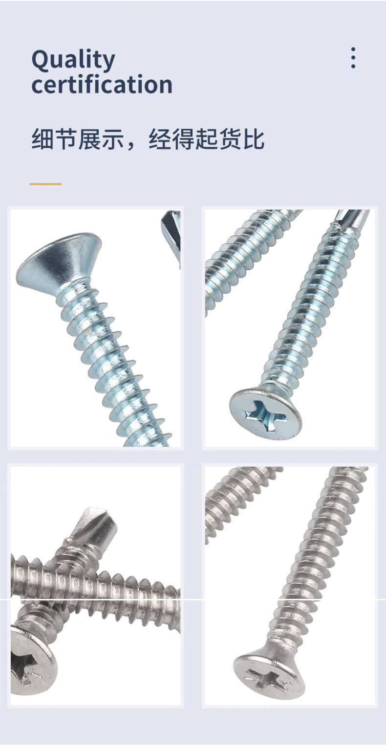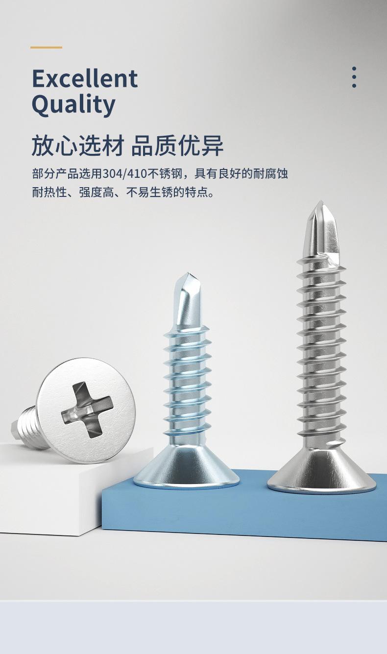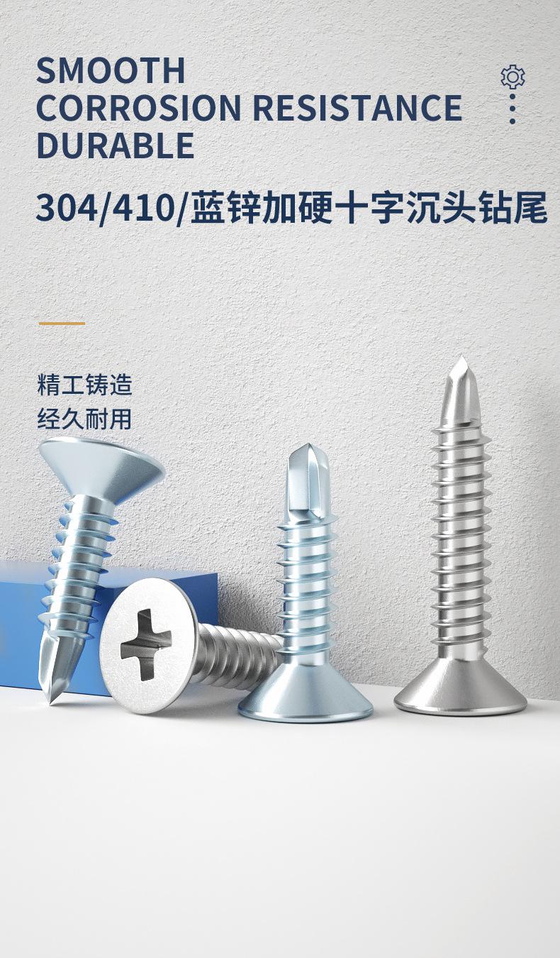 410 parafuso auto-perfurante de cauda de broca escareada cruzada de aço inoxidável parafuso auto-roscante de cauda de andorinha plana M4.2M4.8M5.5