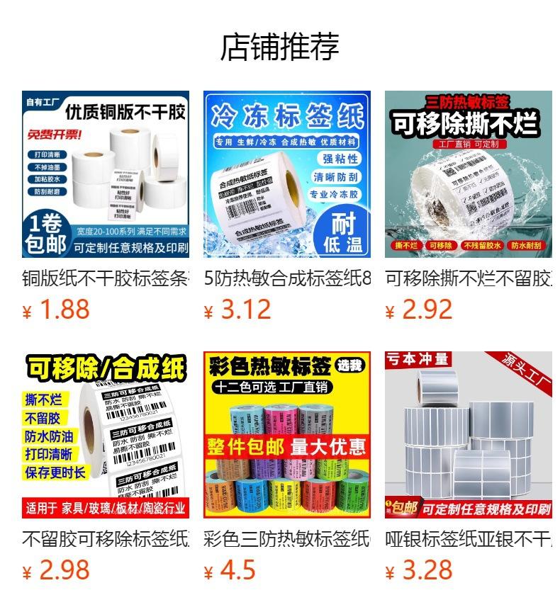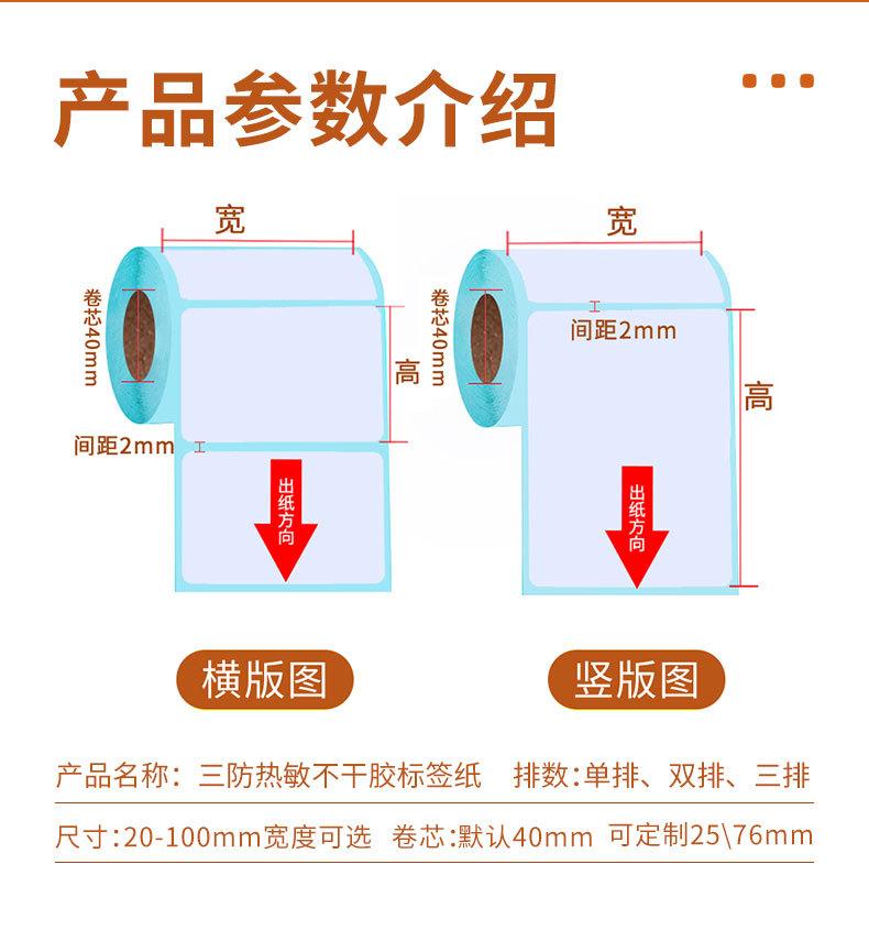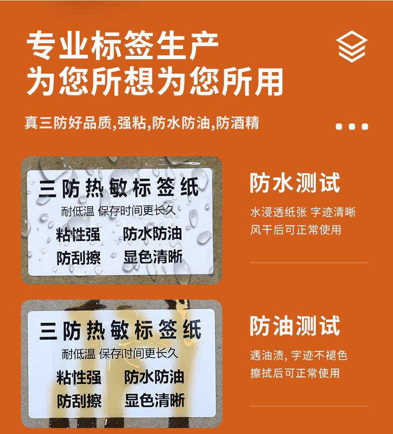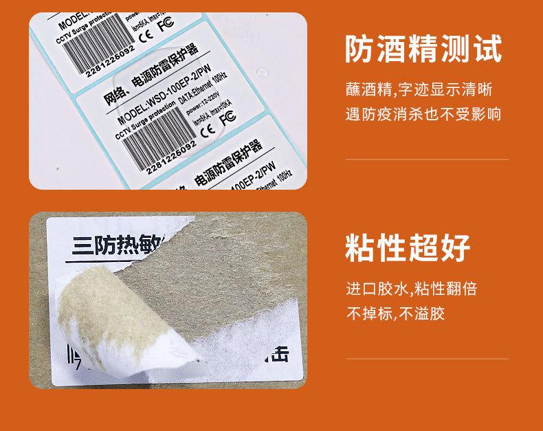 Três à prova de etiqueta adesiva térmica papel de impressão de supermercado papel de código de barras 100 * 150 30 40 50 60 70 80