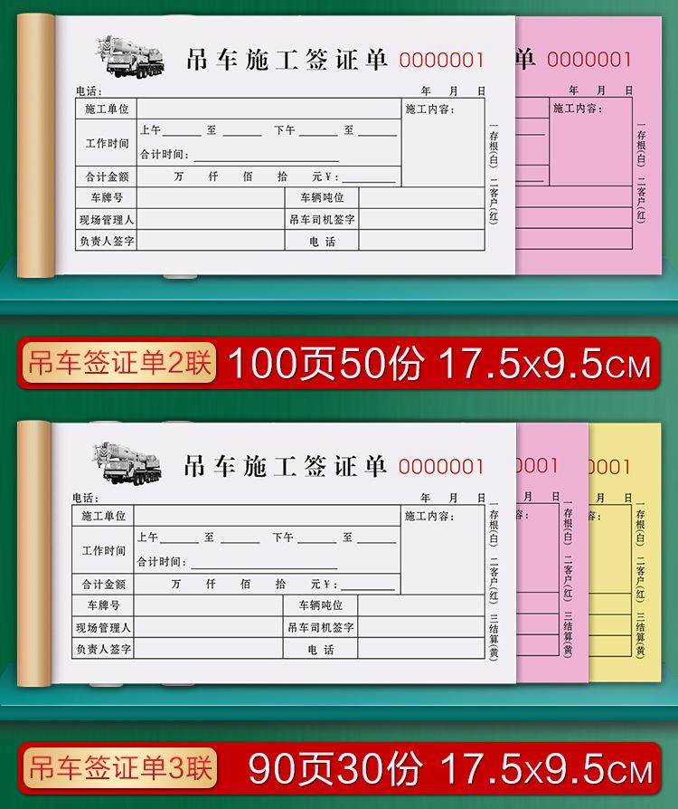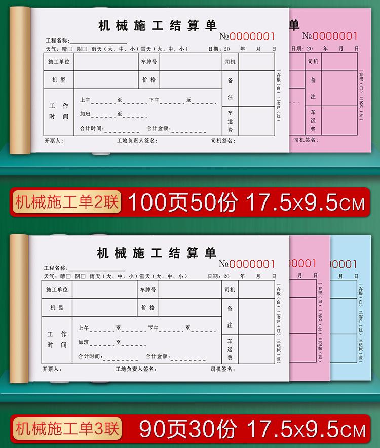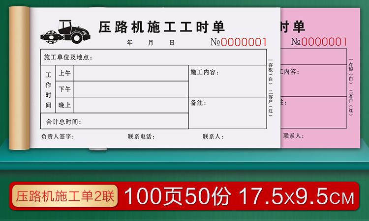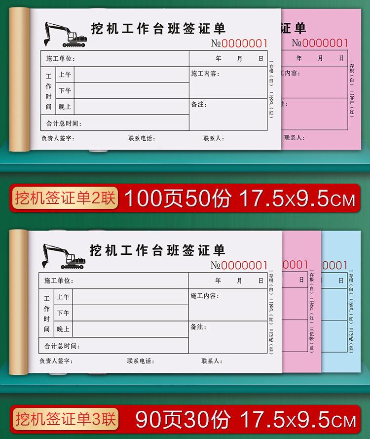 Forklift construction hours sheet/2 copies [100 pages, 50 sets] thickened version, 5 copies, Excavator visa fo...