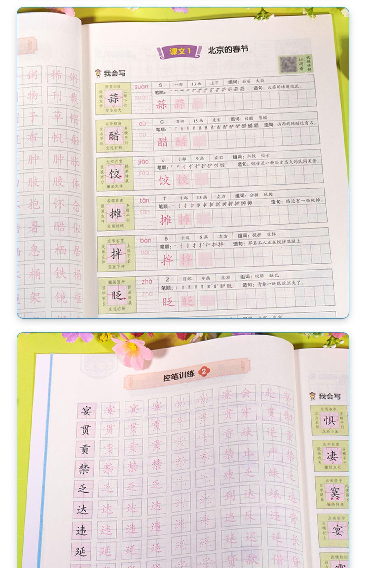 Caderno de prática síncrona para escola primária, educação feliz, segundo volume, 1ª a 6ª série, pasta de caligrafia chinesa, controle de caneta, atacado