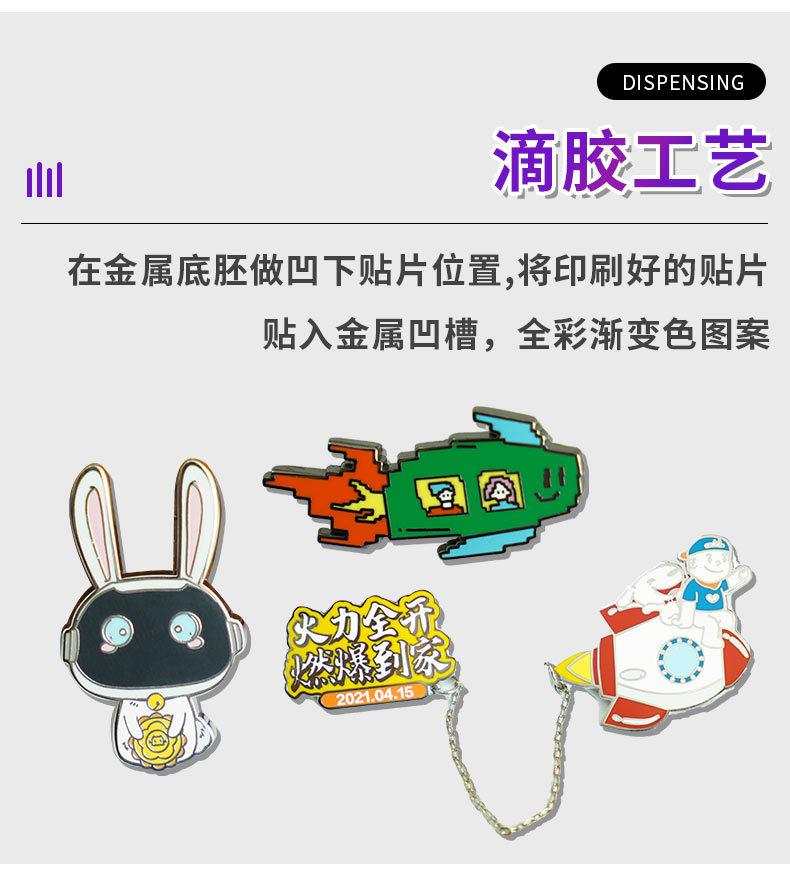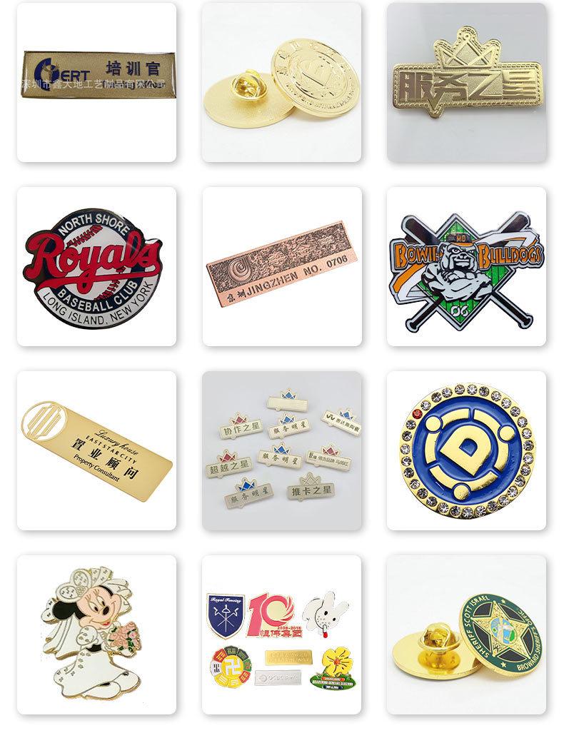 Fabricante Atacado Artesanato Insígnias Pintadas Processamento de Insígnias Medalhas de Metal de Desenho Animado Criativas Insígnias de Trabalho de Hotel Personalização