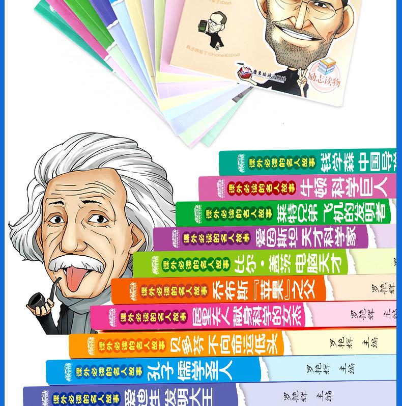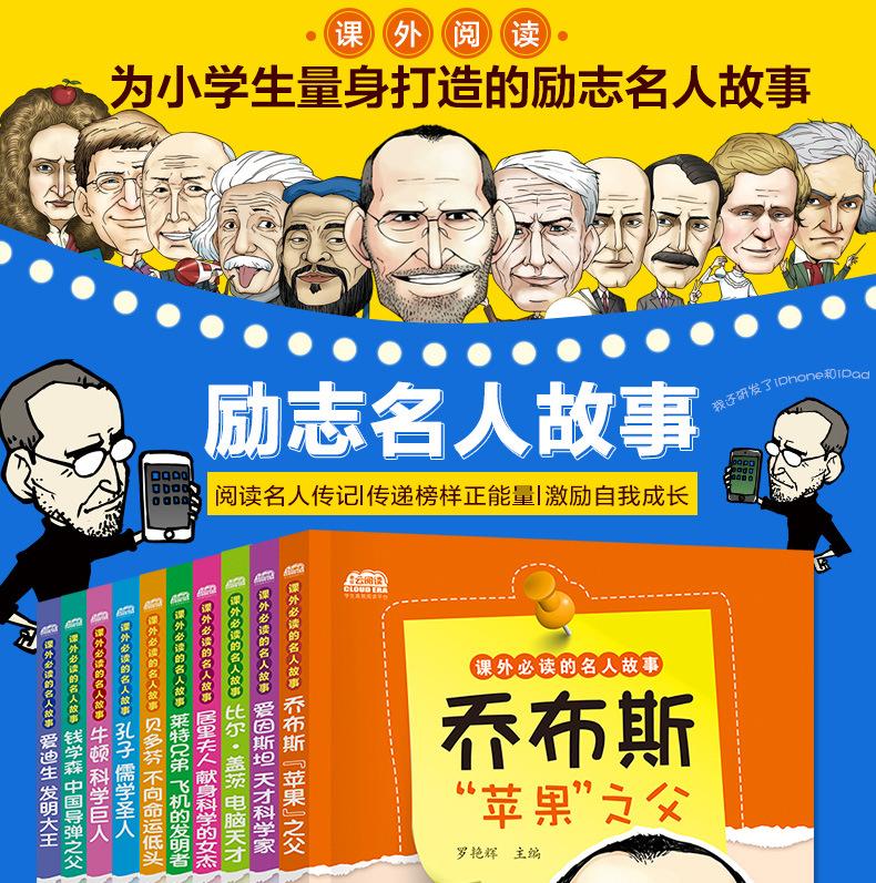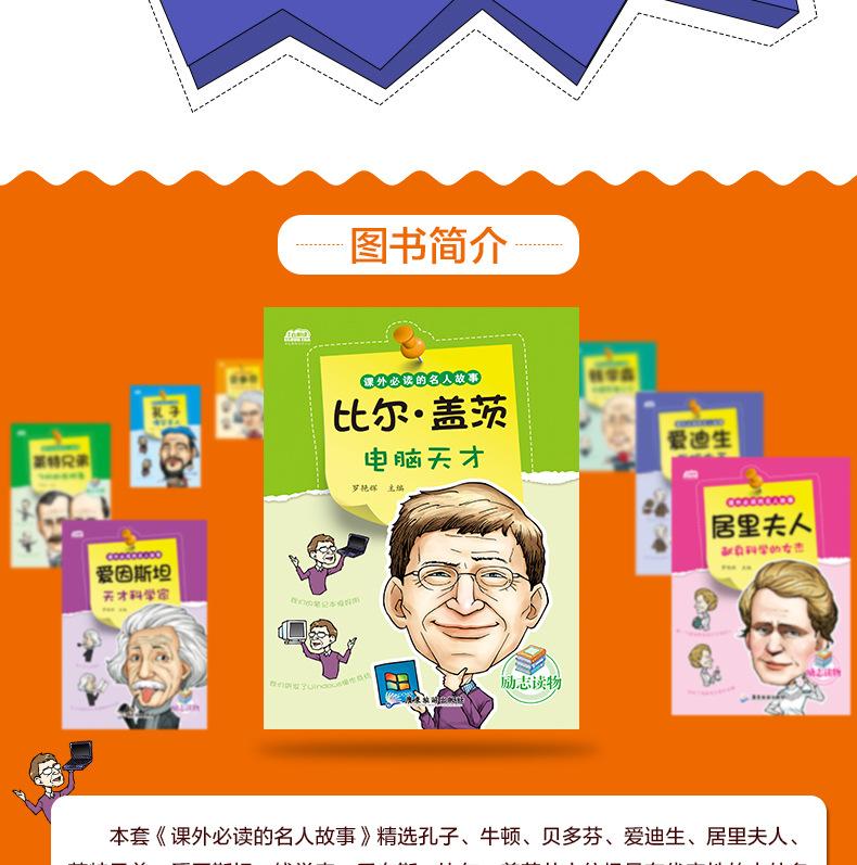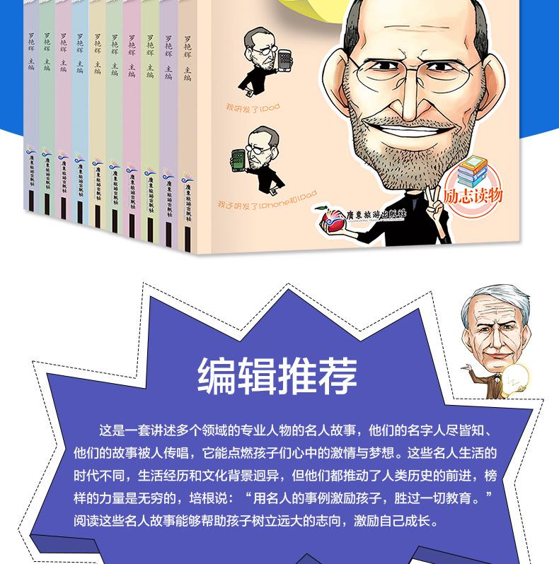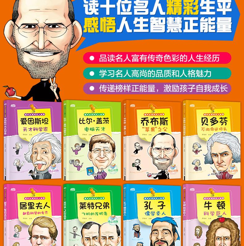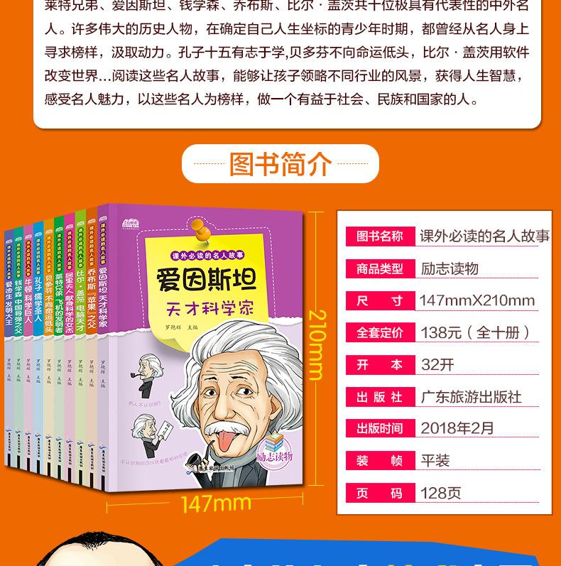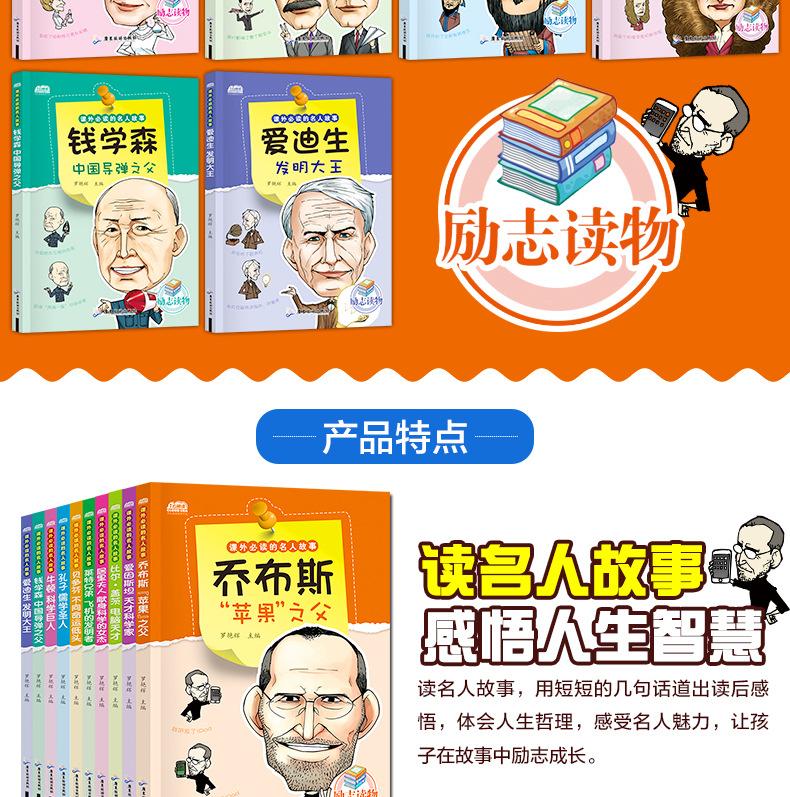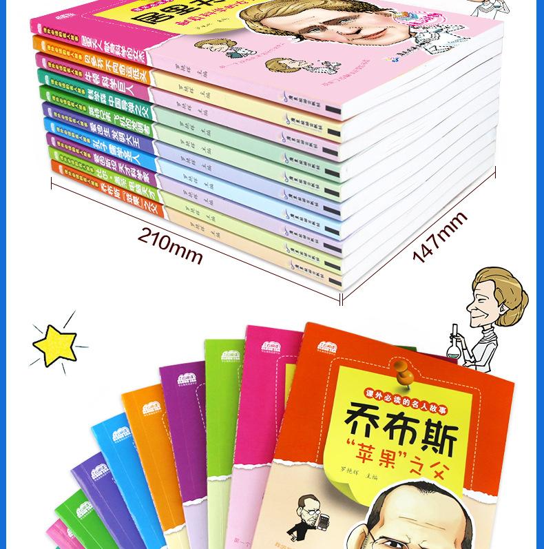 Um conjunto completo de 10 cópias de histórias de celebridades que devem ser lidas após as aulas, biografias de celebridades chinesas e estrangeiras, postagem genuína de empregos Madame Curie